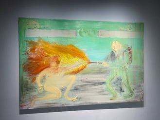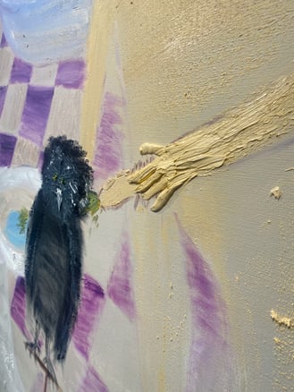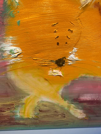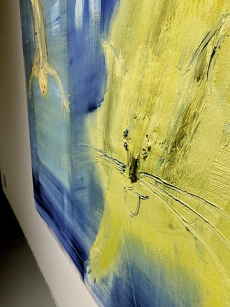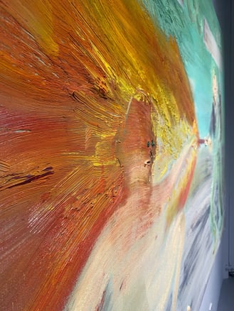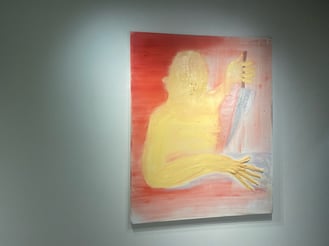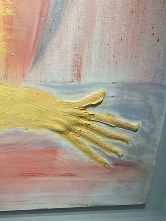痛覚が強調されている部分は油絵の具が盛り上がり、ねっとりとした質感と匂いとが合わさって、絵という平面の情報を観ていたはずが、その部分のみ立体であるような、妙な現実味を帯びて訴えてくるようでした。