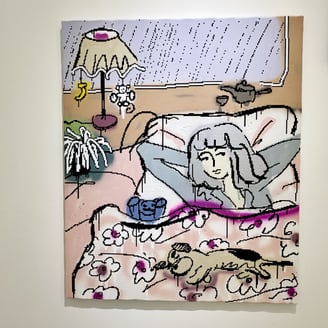 “Deep Paper” という展覧会タイトルは、紙という薄い概念のものに深さを持ち込んでいます。デジタルでの描画を元にしながらデジタルデトックスの場面が描かれ、情報過多の世界と折り合いをつけて生きていく。コンセプトに富んでいながら、自身の経験から感じたことを元に作品として昇華し、観る人の癒しをテーマにした作品群です。hinさんの色の表現にも触れて欲しいので、ぜひ実物を観に足を運んでいただきたいと思います。