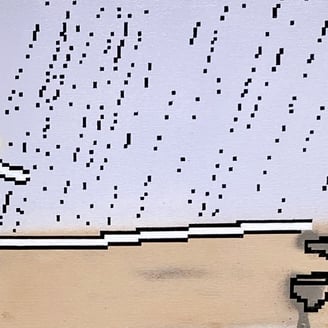 小さい四角(ピクセル)の並びという単純とも言える表現だけで、ペイントツールで描いた雨の感じがすごく出ています。