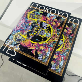 他、会場ではたかくらかずき × 葛飾北斎 × HORIZON inc のニット (画像がありませんがすごくかっこいい) も販売されています。そして、本展の作品はStartbahn Cert.で発行されるブロックチェーン証明書Cert.に紐づけられたエディションや、NFTデジタルデータとして販売されているとのこと。