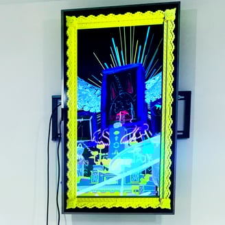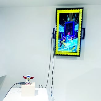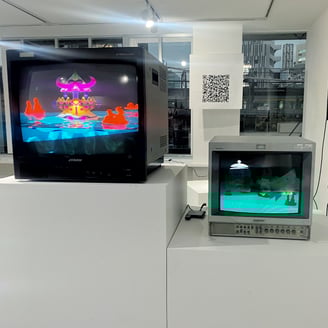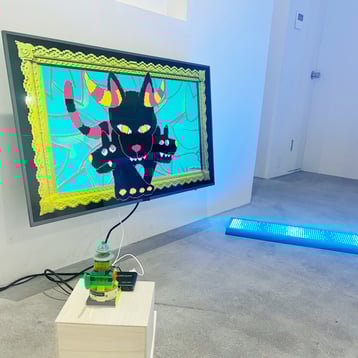 会場に置かれている作品説明のファイルを読み込むと、へぇー、とか、なるほど、といった気づきが多く、一つ一つの作品が濃い印象でした。アプデ輪廻の公式サイトもぜひ参考に。たかくらさんが、コロナ禍においてどのような影響を受け、何を考え、どう作品に反映していったのか書かれています。たかくらさんのYouTubeちゃんねる「データそうめん」ではアプデ輪廻の理解が深まるような動画なども多く、過去にクラウドファンディングを募り制作された、仏教の世界観をテーマにしたシューティングゲーム「摩尼遊戯TOKOYO」のプレイ動画もあります。