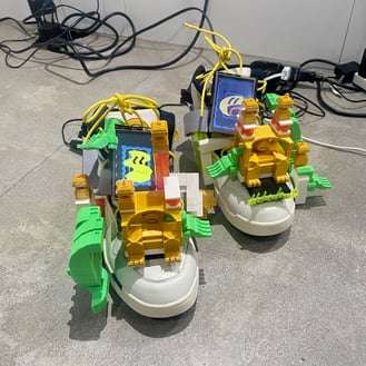 右と左の靴のモニター同士が会話している、というもの。