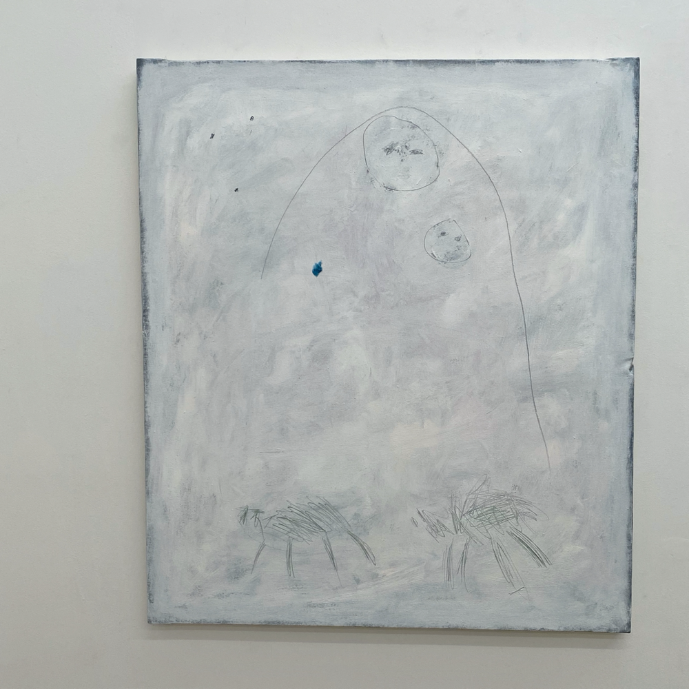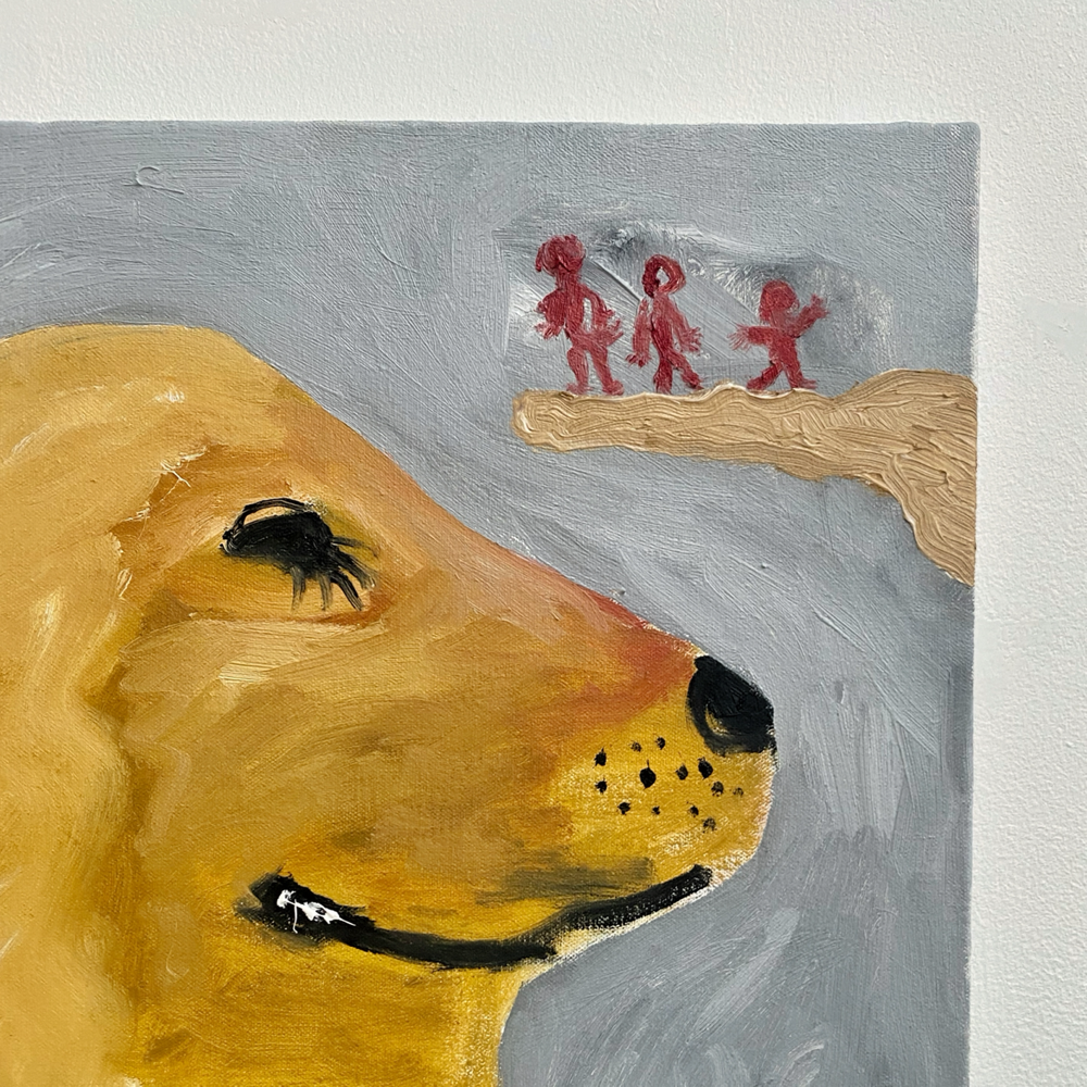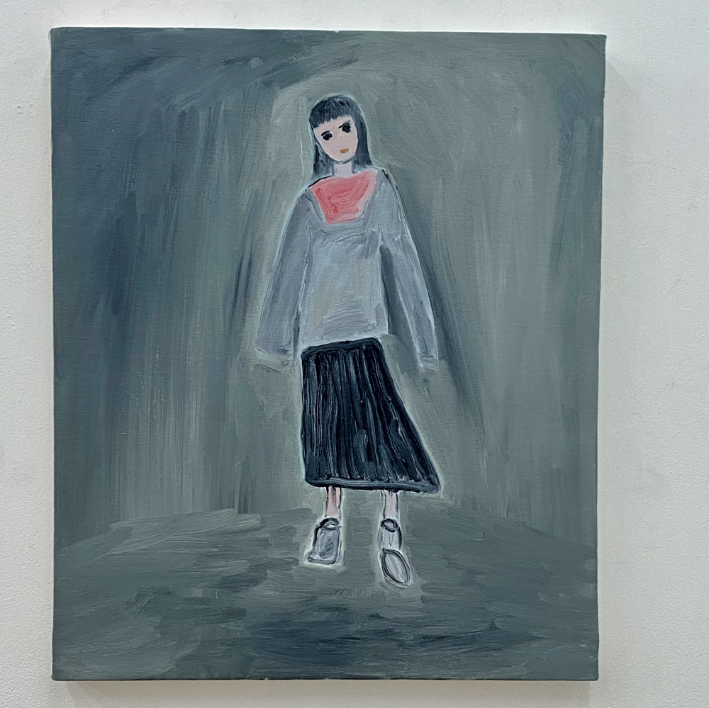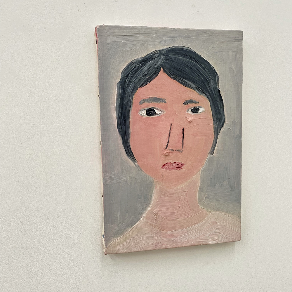 会場の作品を拝見すると、そこには「私に言ってみて」や「餌台」の物語があるわけではなく、それぞれが独立し、描かれているものだけでなく描画の方法も変えているのではないか、と感じる世界が展開されていました。Bambinart Galleryの米山さんは金さんの作品について、一見、自由に描くことに重点を置いているように見えるが、作家自身の嘘偽りのないリアリティに忠実に表現を近づけていっている、と評しています。