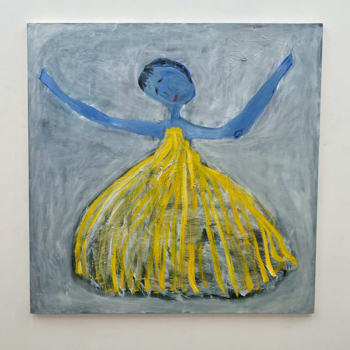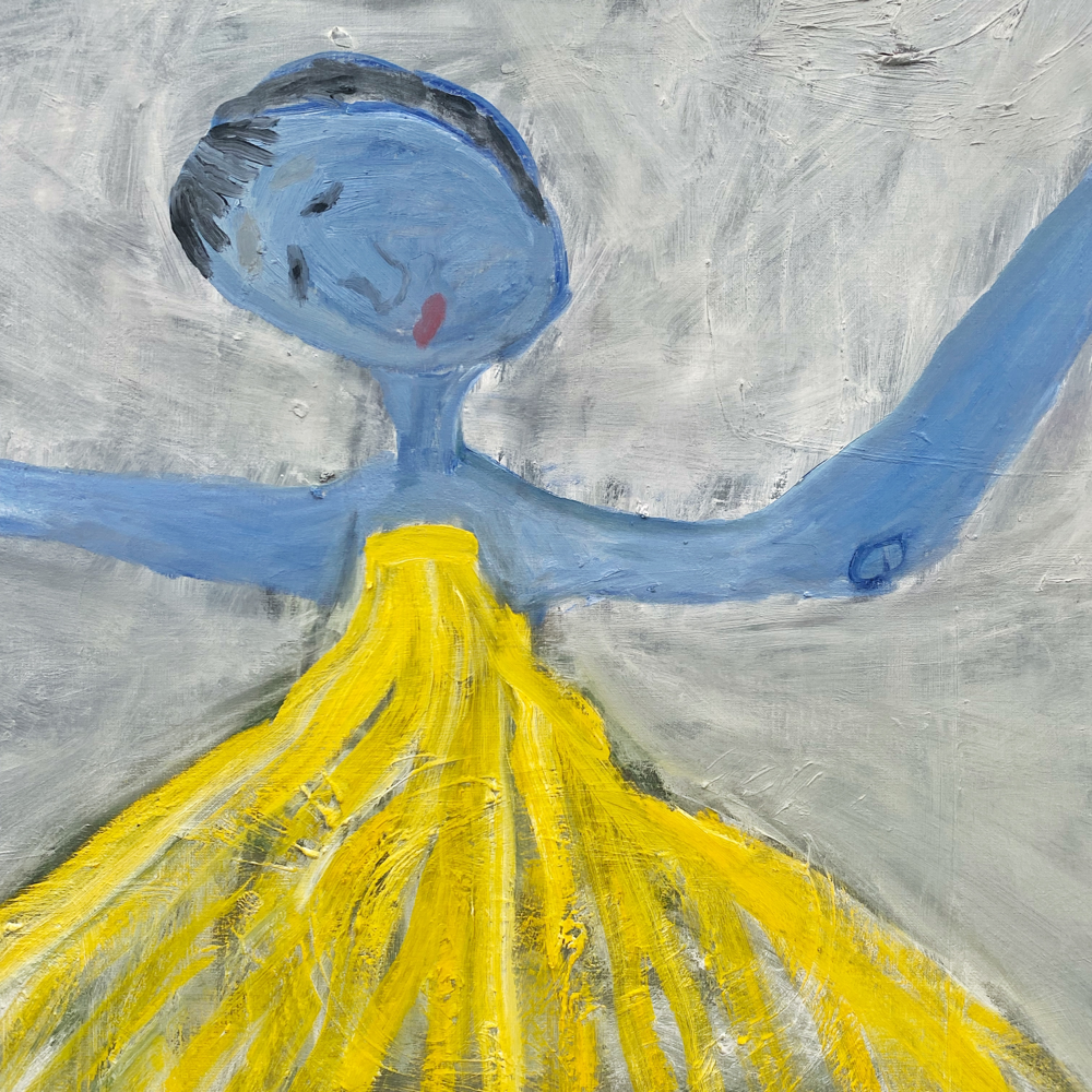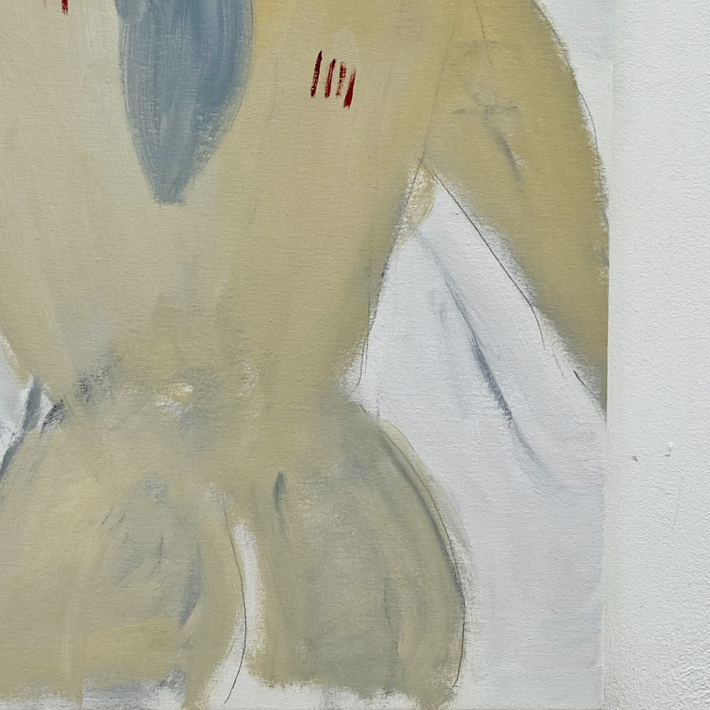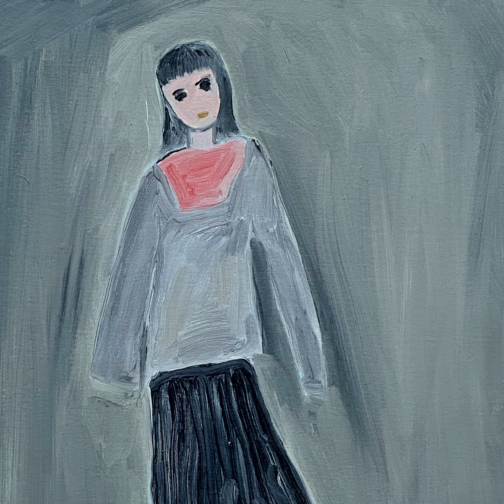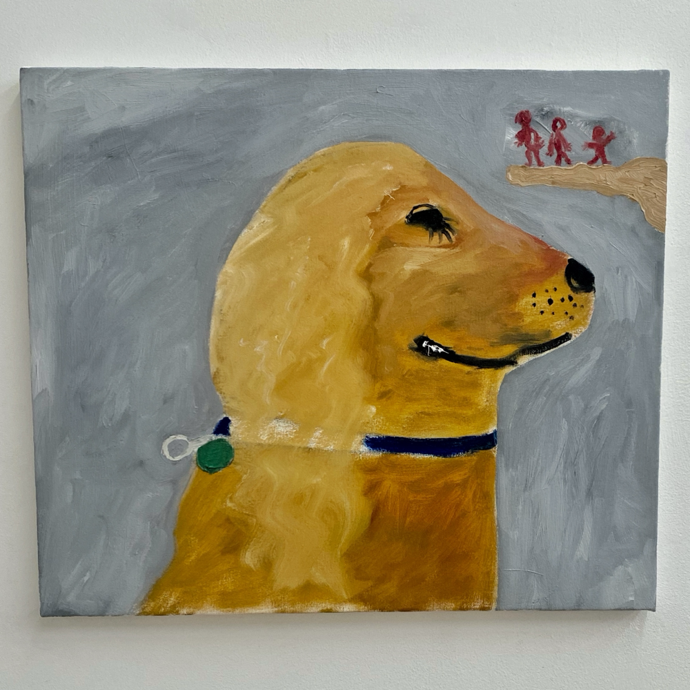 会場の作品を拝見すると、そこには「私に言ってみて」や「餌台」の物語があるわけではなく、それぞれが独立し、描かれているものだけでなく描画の方法も変えているのではないか、と感じる世界が展開されていました。Bambinart Galleryの米山さんは金さんの作品について、一見、自由に描くことに重点を置いているように見えるが、作家自身の嘘偽りのないリアリティに忠実に表現を近づけていっている、と評しています。