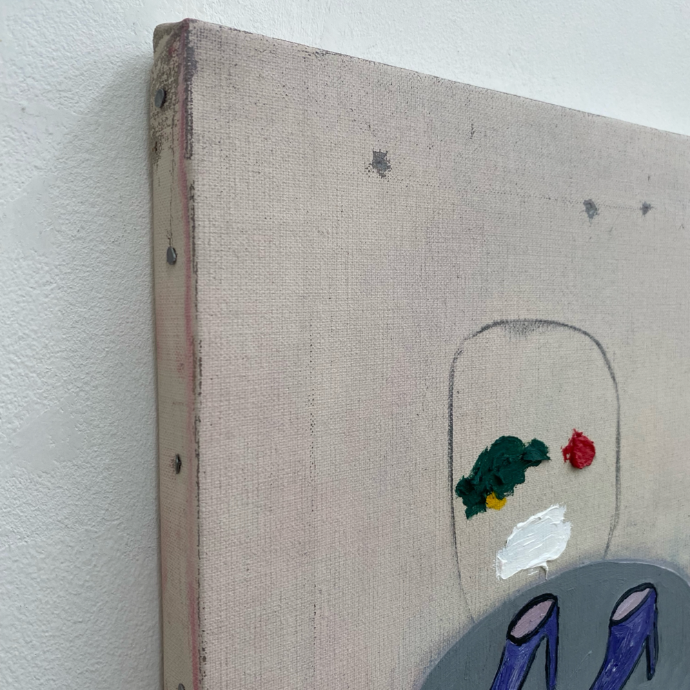 木枠も自身で組んでいるそうです。ゆえに歪んでいたり凹みがあったり。それも作品の重要な構成要素と感じます。