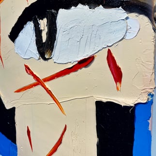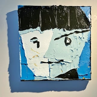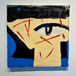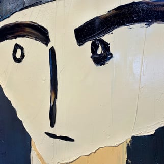 描かれているのは顔ですが、ペインティングナイフのみで描いたのではないかというくらいエッジが立ったデフォルメが印象的。