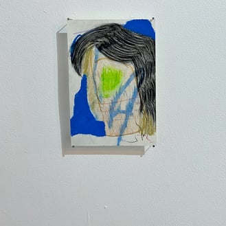 以前より似顔絵や似ない絵 (!) という人物画を描いているchappyさん。髪をモチーフに、「肌の色を加えると何でも顔に見える」という他作家さんの言葉をヒントに制作された作品。髪のスクラッチ表現に惹きつけられます。
