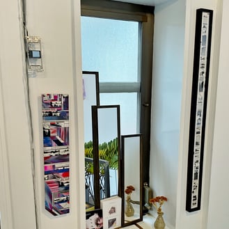 紙の作品。映像のフィルムのようにも見えます。右下の斜めのカットに額も合わせているこだわり。