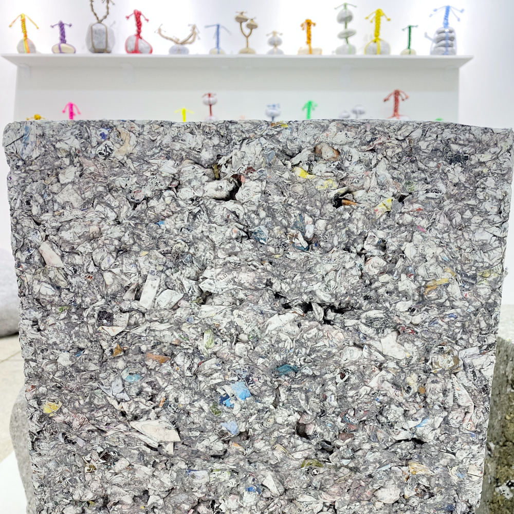 本展「PAUSE」はそれらとはまた違い、「還魂紙」から出来ていること、見た目にも惹かれる「関守石」という形であることに意味があります。そのコンセプトが作家の歩んできた道を想像させ、私たちの人生に寄り添う。なかなか熱いメッセージをはらむ作品群です。