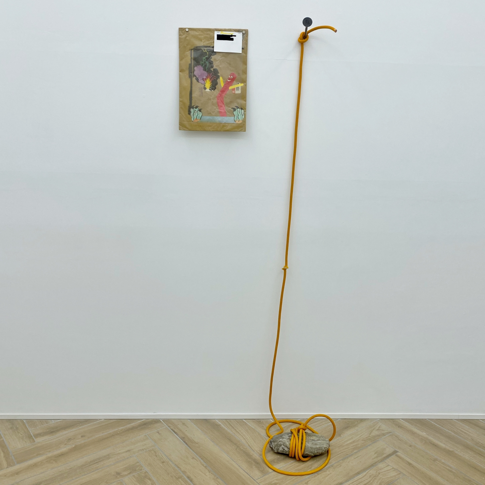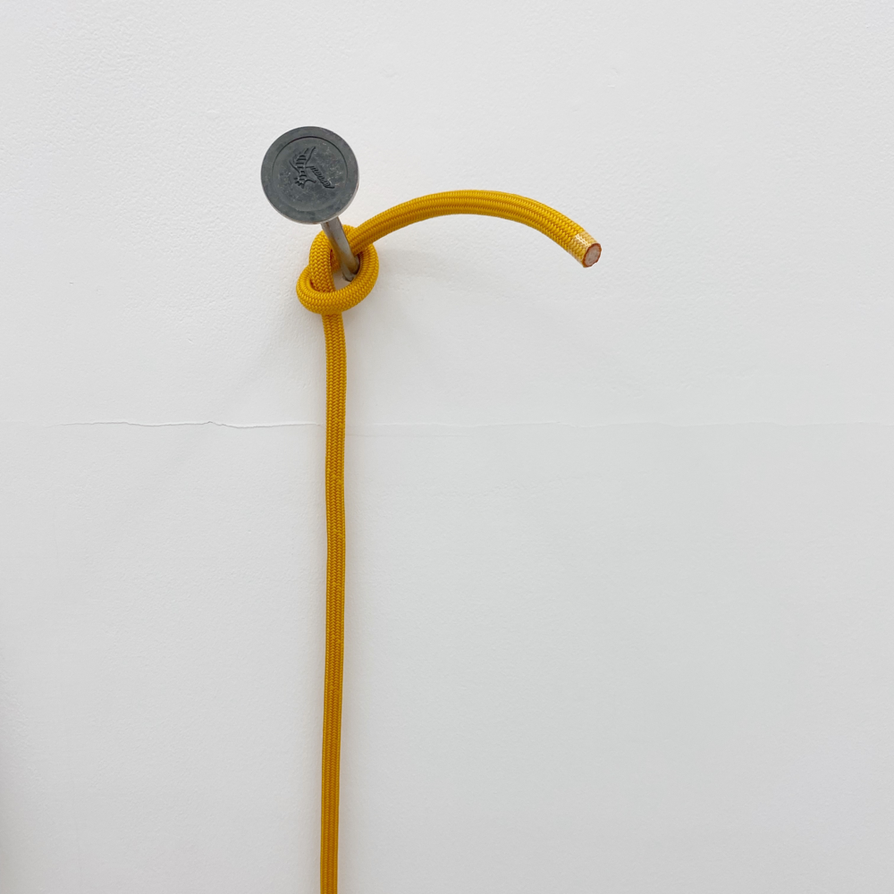 会場のFARO Kagurazaka Galleryの方にお話を伺うことができ、本展には「解放」というキーワードがあると知りました。よく観察すると、登場しているロープのモチーフが切れていたり、切れそうだったりしています。