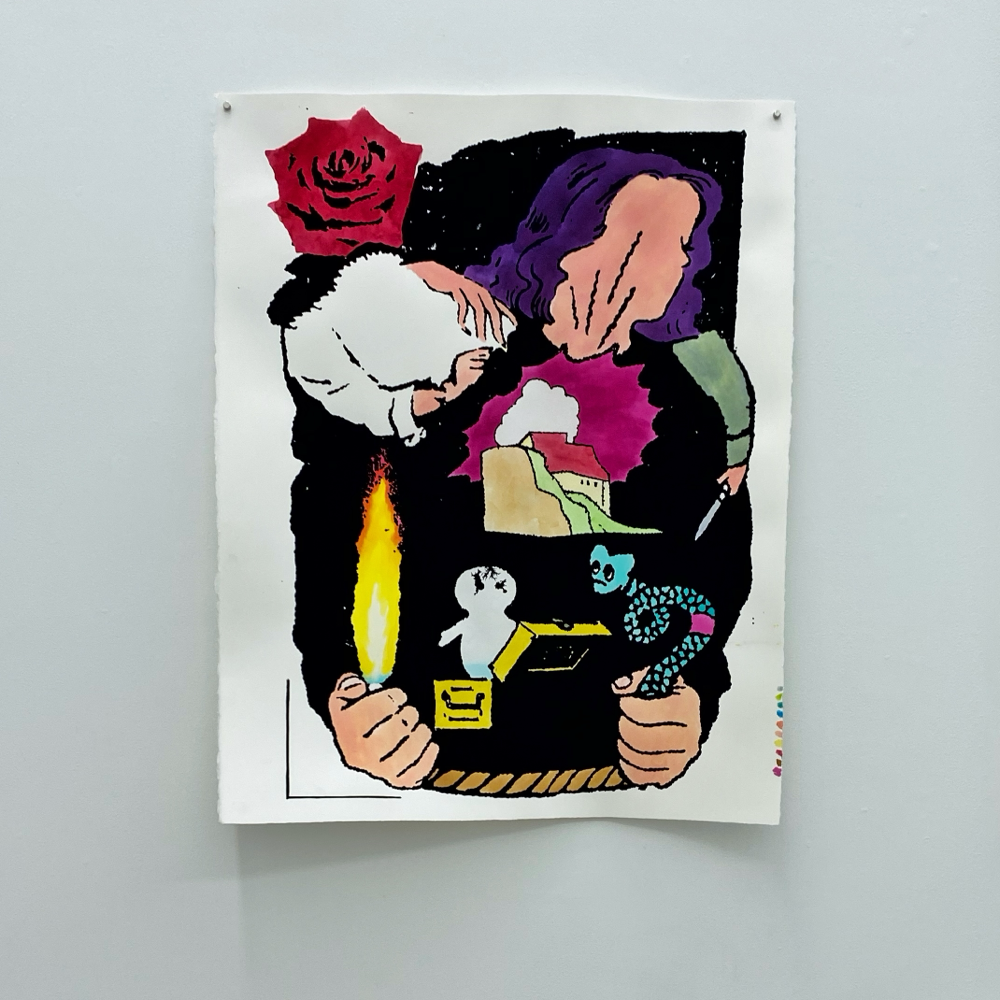 作品そのものはステートメントにもあるように「余白にある愛」の部分と言いますか、不思議な楽しさ、面白さ、何が描かれているかは具体的に分からなくとも気分の高揚を感じるものでした。かっこいいアートに遭遇すると興奮してしまうあの感じ、部屋に入った瞬間「ヤバいいいい(喜)」という感情が浮かびました。