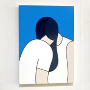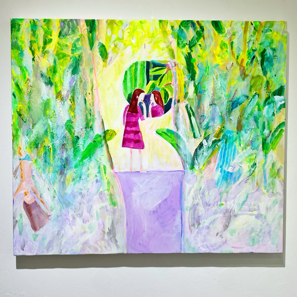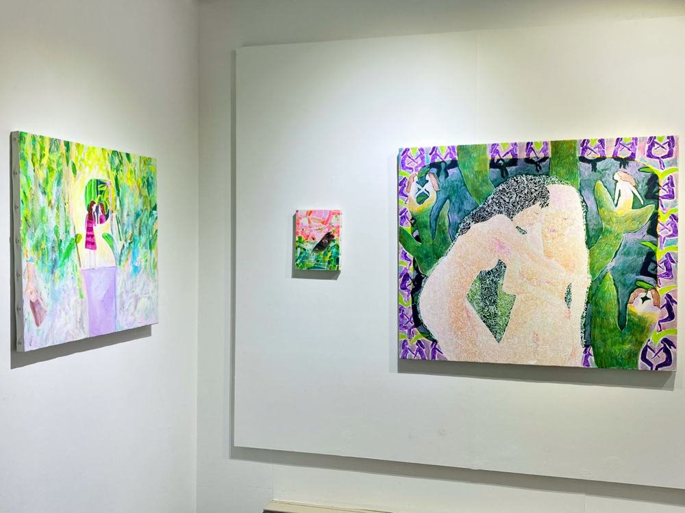 脱線の度合いが甚だしくなったので展示作品の話に戻しますが、本展では、2人の女性が向き合っておらず横を向いている「イブとイブの逃走」シリーズが個人的にとても気になりました。他者に連れられて行く自分、あるいは自分が連れて行く他者。個人の中での自分と自分と読むなら、行く先はどこなのだろう? 自分と向き合うという表現はよくあるけど、顔の向きのその先、自分も知らない先に連れて行く自分。見ている先には何があるのでしょうか。