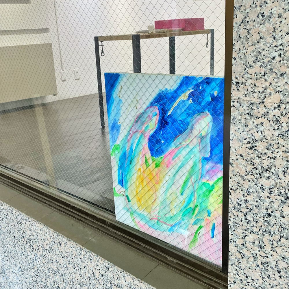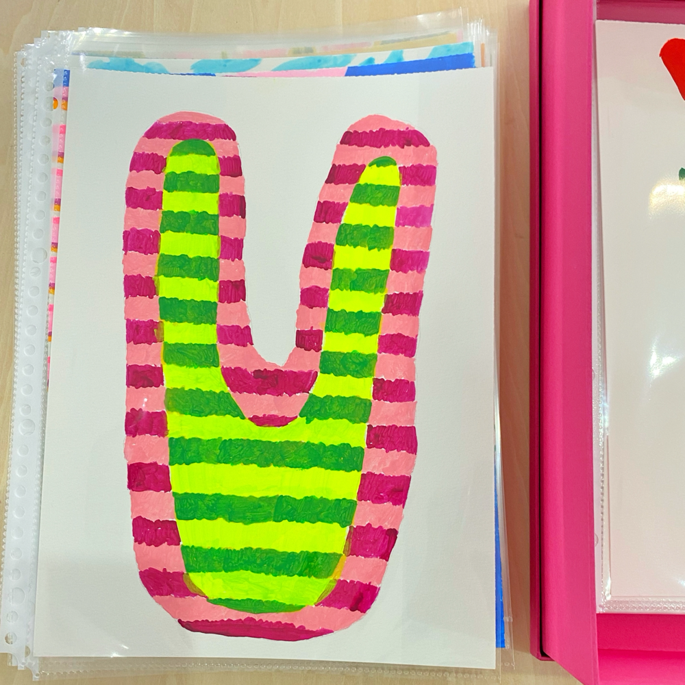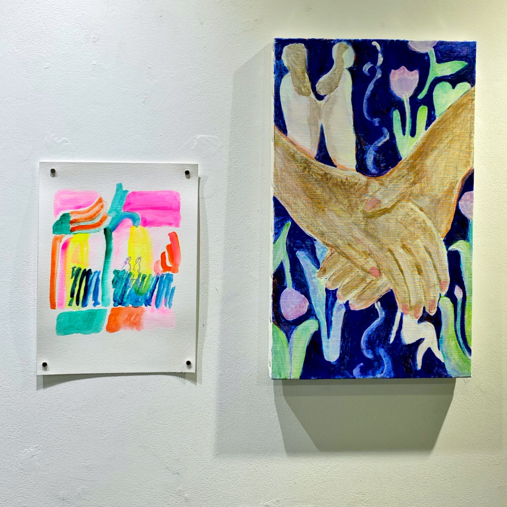 写真画像からは伝わりづらいですが、蛍光色なども使用されていて色鮮やか、とても目を引く作品群でした。