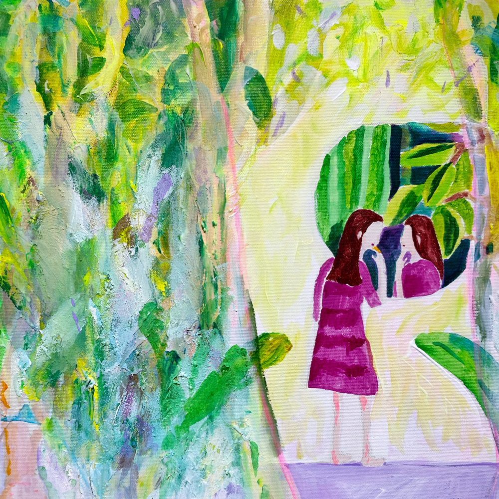 けっこうスピリチュアルな感じ方になりますが、「イブとイブの逃走」シリーズを、自分自身が別個体の自分と共に新境地に向かう図と受け取るならば、瞑想などで自身の奥に入り込み、先に進めない原因となっていた心理的障害を、当時の自分と共に乗り越えるような場面を思い浮かべました。幼少期に刷り込まれた思い込みがあるならば、それを幼少の自分と共に乗り越える、みたいなイメージです。自身の心の中の葛藤や苦悩から、何とか折り合いをつけようという思い、新しい見方や感じ方ができる場所へと向かおうというような思いが感じ取れます。