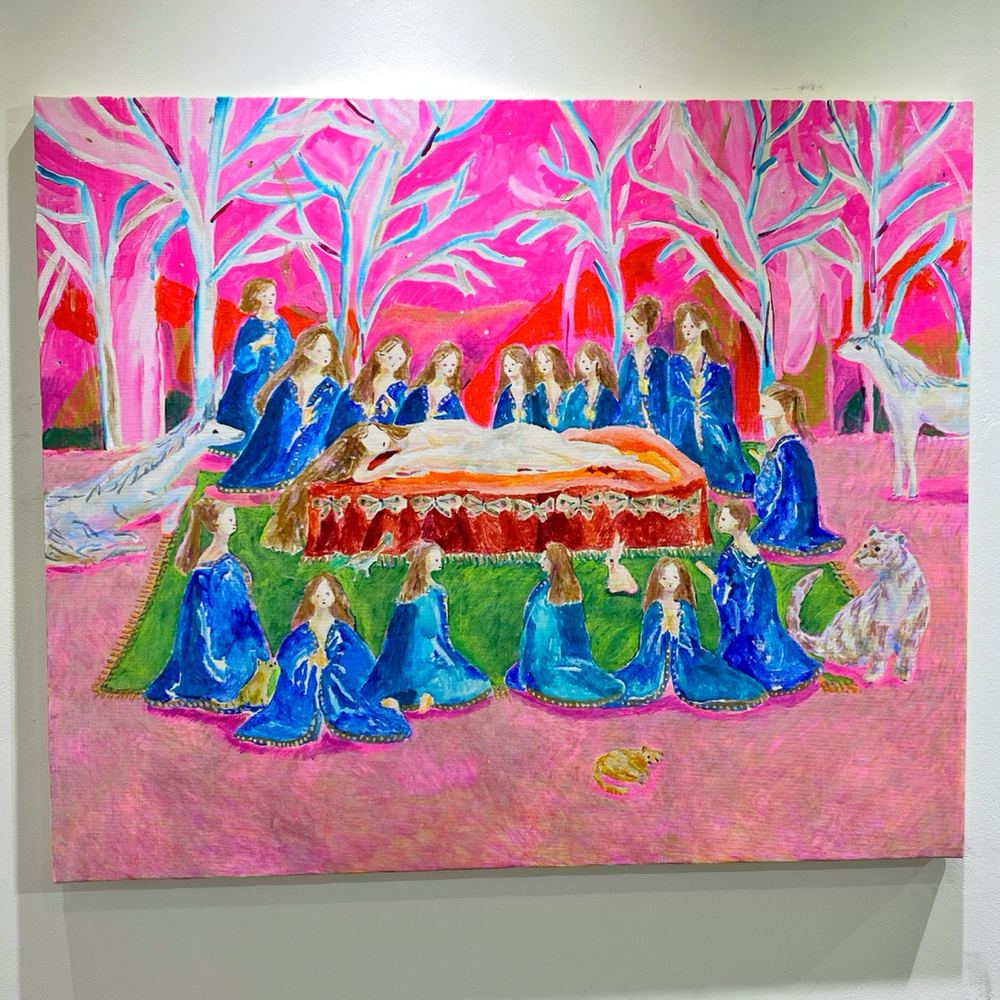 タイトルの「(まだ終わらない)」 という部分に苦悩を感じます。涅槃 (ねはん) とは釈迦の入滅、煩悩などから解放された悟りの状態です。この作品で登場しているのは全員女性のような気がする。もっと言うと、全員同じ人。個人の心の中で、苦悩の原因から解放されるべく、涅槃の図に達するもまだ終わらない。