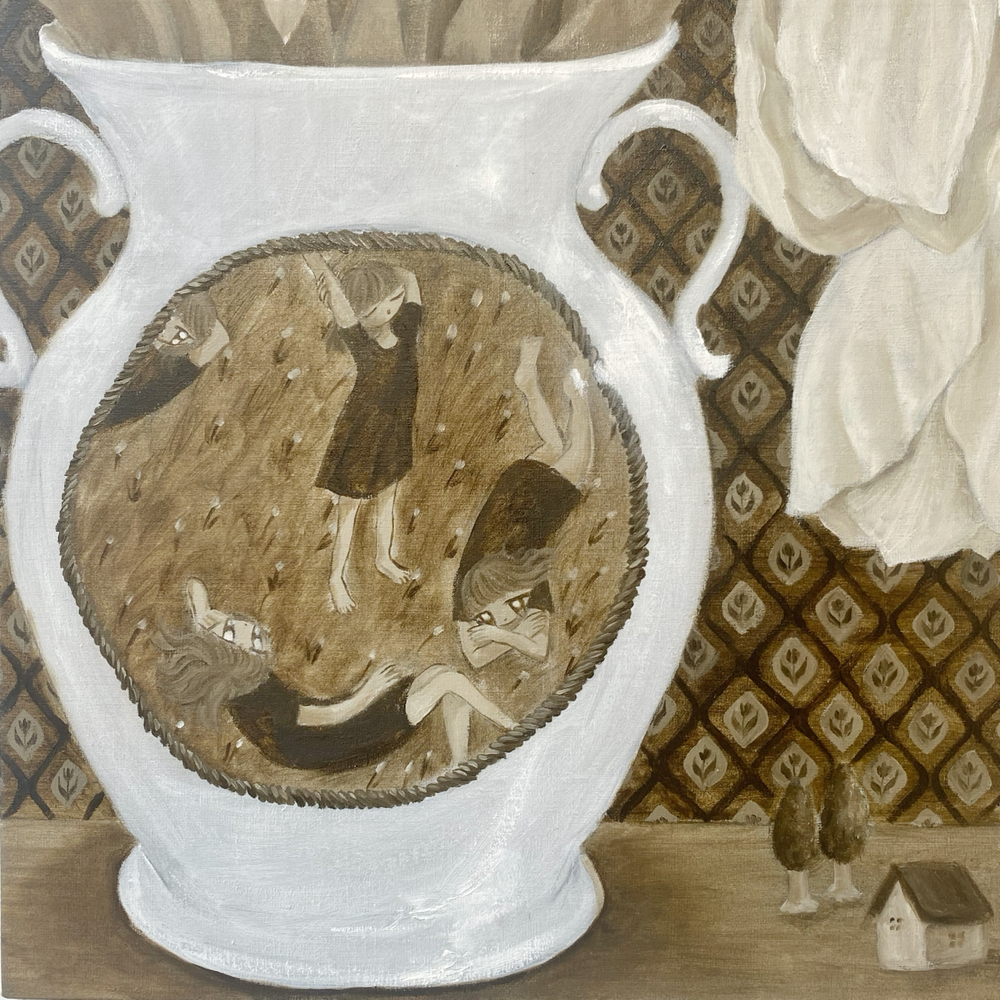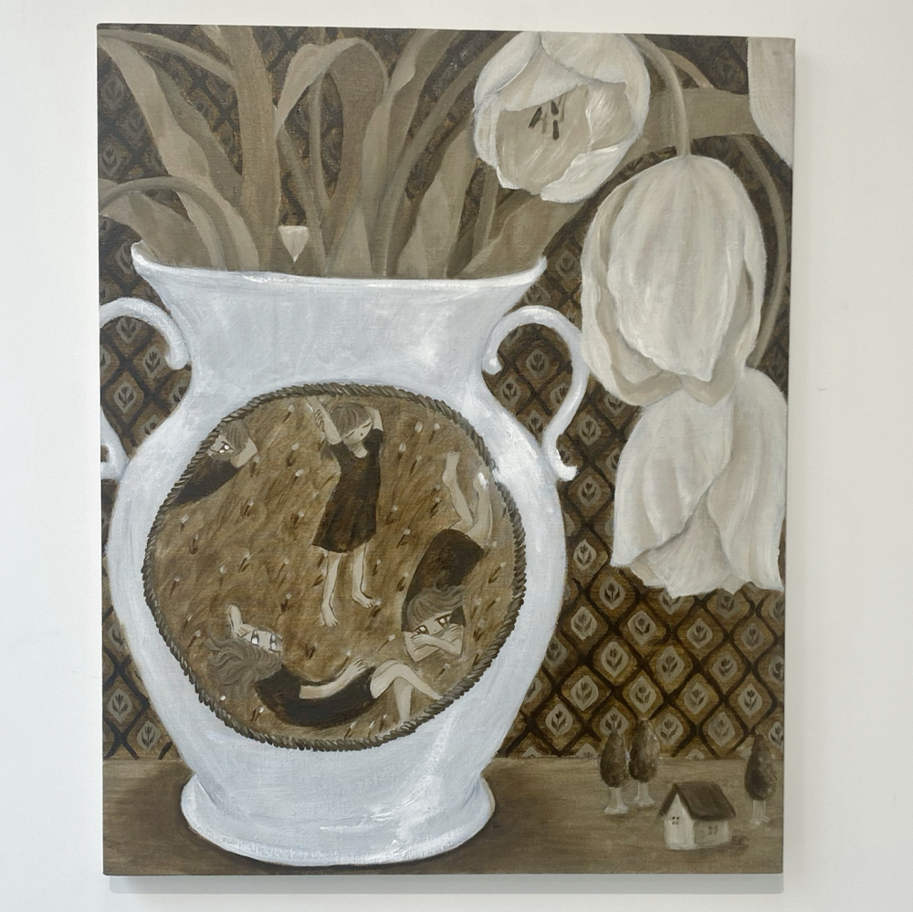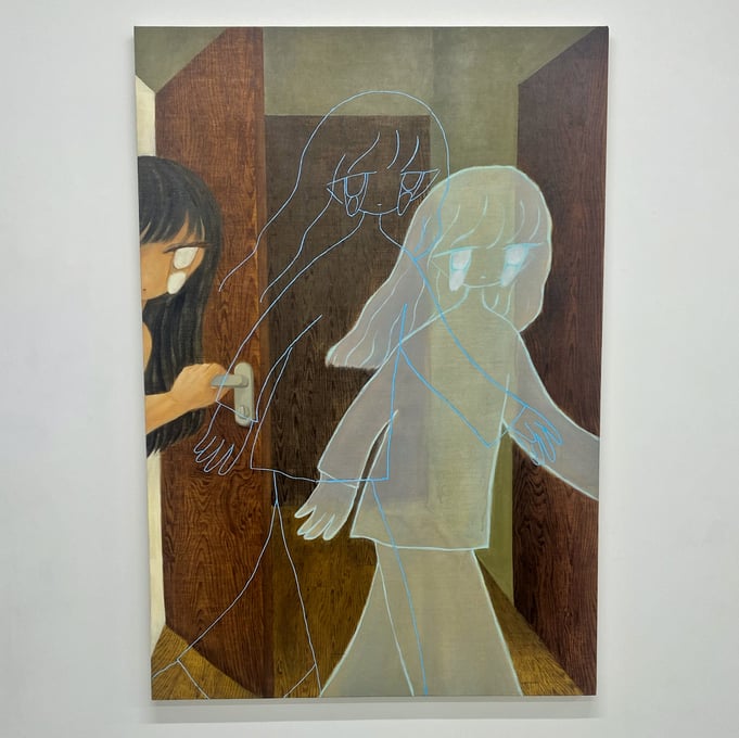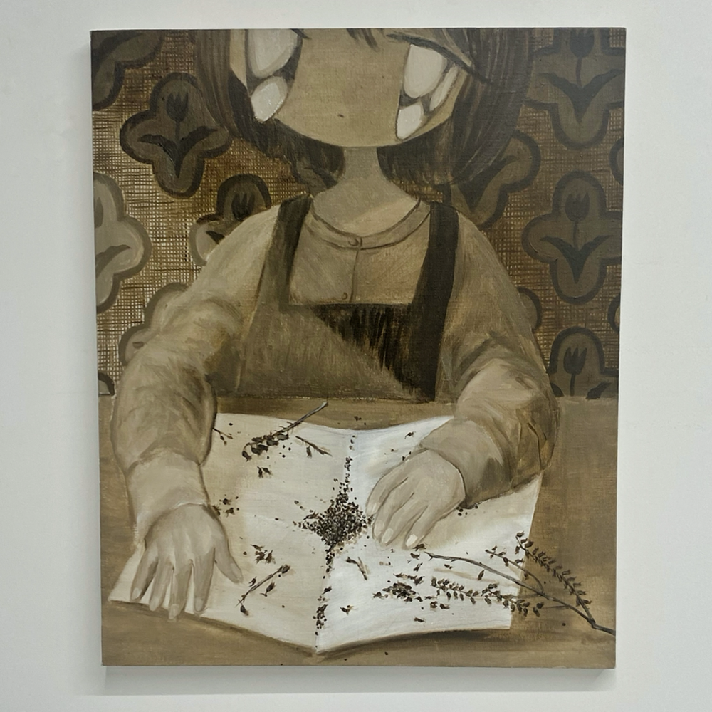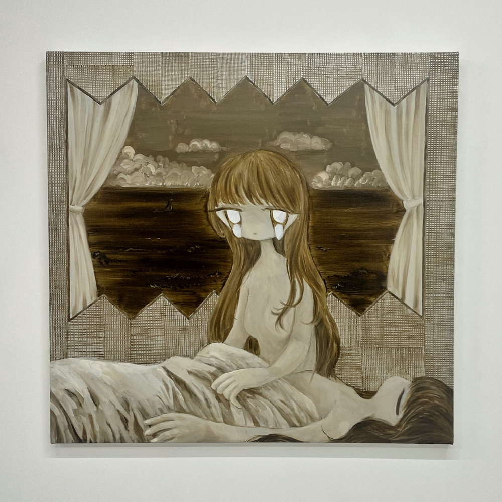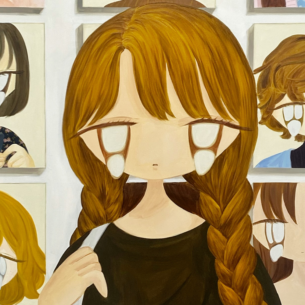 かわいー! 展覧会のメインビジュアルにも採用されている作品群。みんな違って、みんな可愛い、、、。瞳が顔からはみ出ているのに可愛いって、すごくないですか? しかも、彼女たちの表情から感じるのはアンニュイさ、思慮深さ、知的さで、比較するなら例えば、顔面修正アプリで加工した顔に見られるような陽気さ、アホっぽさ (失礼) とはかけ離れているんです。