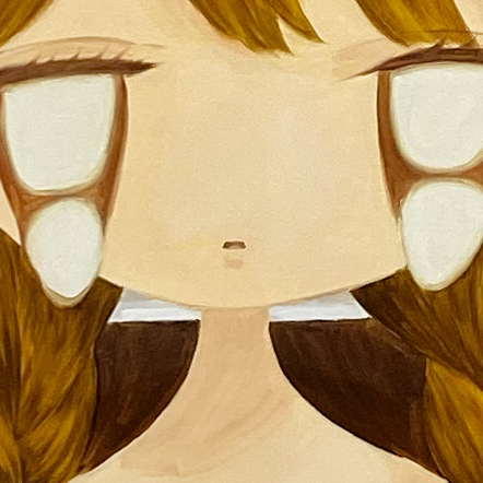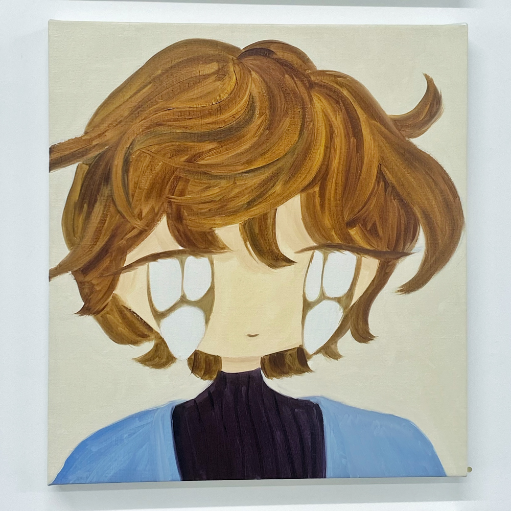 未来の時代の人間が石井さんの作品に出会った時、何を思うかは分かりません。ですが、私たちが生きている時代には、この、大き過ぎる潤んだ瞳を持つ表情に「可愛さ」という概念を感じ取った人間がかなりの数存在した、ということの証明となってくれたら最高だな、と思いました (作品はほぼ Sold out です) 。少女漫画の瞳が顔の1/3を占めようとも関係ない。可愛いものは可愛い。1/3なんて甘い! 1/2、瞳が輪郭からはみ出しても可愛いんじゃ、見たか!