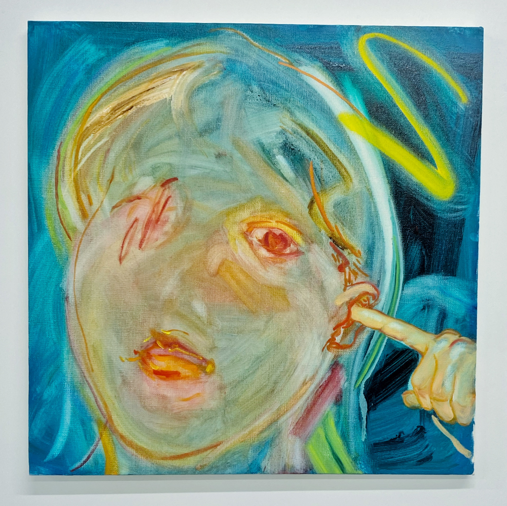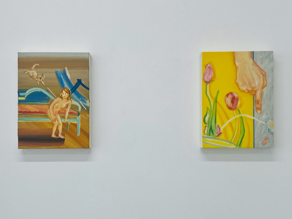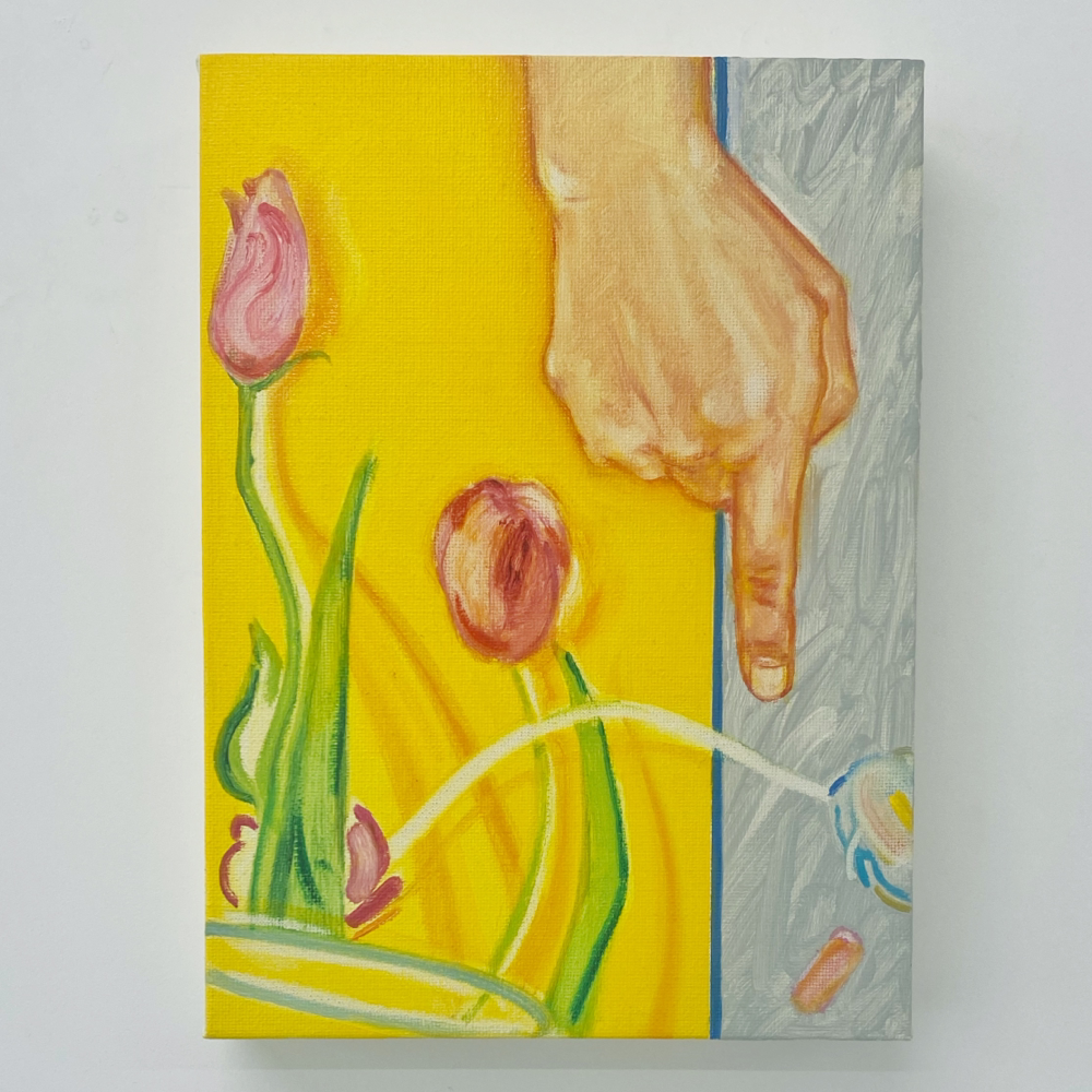 同時開催されている石井海音さんの個展の作品「My ghost floating」と同じ位置に描かれたチューリップが気になります。石井さんは ghost を指差していたけど、こちらでは消えかかるものを感じようとしている風に見える。
