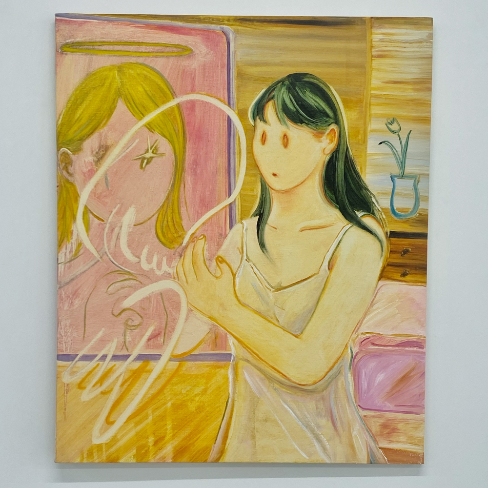 本展「fictional reality.」では、描かれた人物の顔に変化が見られるというのもあり、フカミさんの作品の魅力は人物描写に留まるものでは決してない、ということを強く感じました。顔が似てるとか思ってしまってすみません。「芸能人にちょっと似てない?」と勝手に思っていて偶然本人に遭遇したら「全然レベチでした、ごめんなさい」という状況でしょうか。