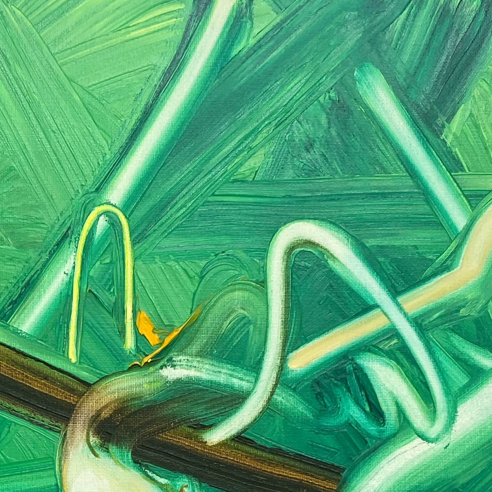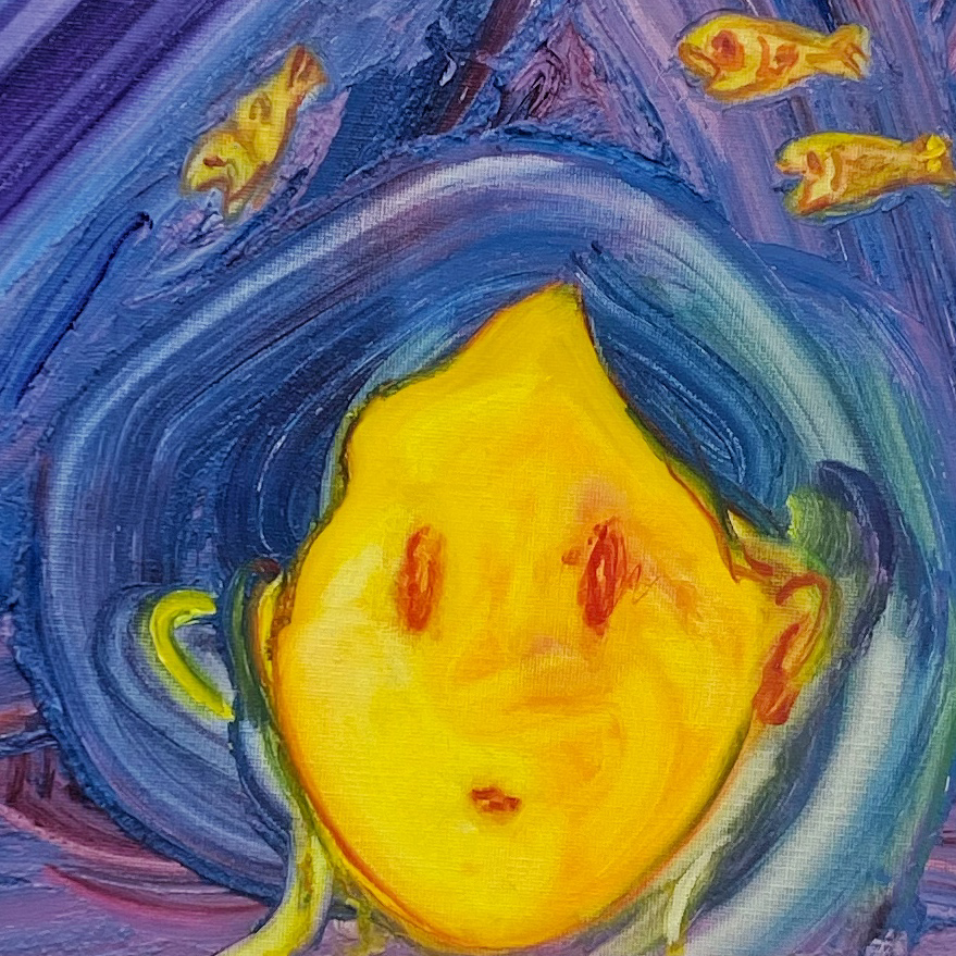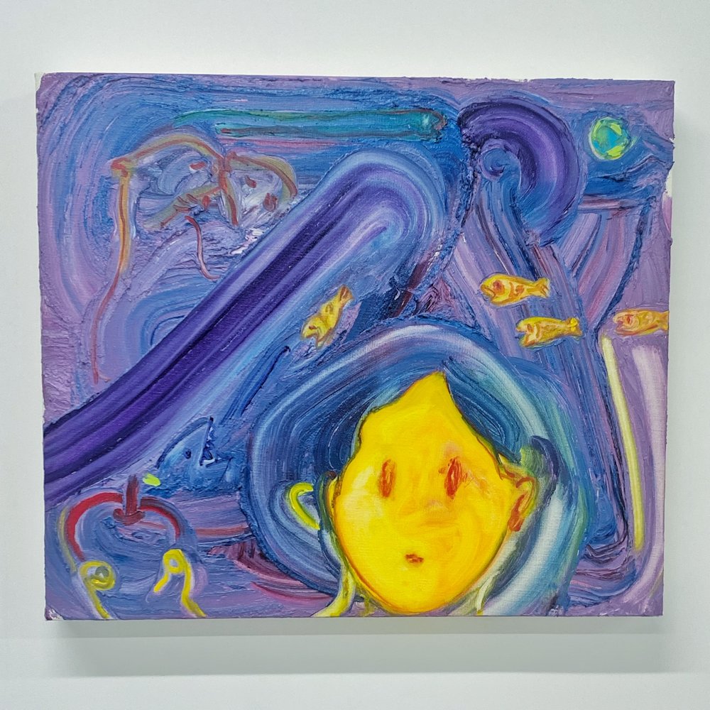 フカミさんが描くのは、自身が受け取った現実 = reality です。ブレイク前夜 ♯283 のインタビューの中で、描いているものについて「その日にあったこと全てを詰め込んだようなスーパーリアリティ」と表現されています。そして、それが具象ではなく抽象的な表現であることについては、具象で定義づけるのではなく観る人がその人なりのリアリティを新たに重ねられることを良しとされていて「哲学みたいな感じで自分の絵が作品としてみんなの中で存在できたらいいなと思ってます。」と発言されています。