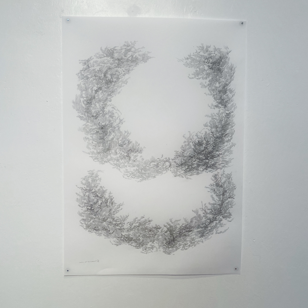 冒頭に抜粋掲載した福室さんのステートメント「見えない場所で繰り返される自然の営為。その不安定なのに精巧な自然のシステムを描きながら自分自身の身体や感情の表現との共通性がないかと探っています。」という部分が急に理解できた気がしました。