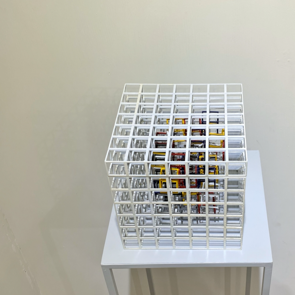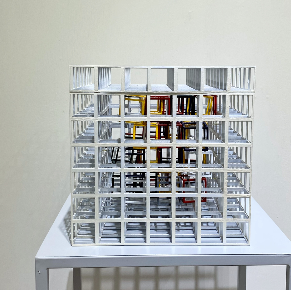 キューブを積み重ねることでメッセージのある彫刻作品を発表する。