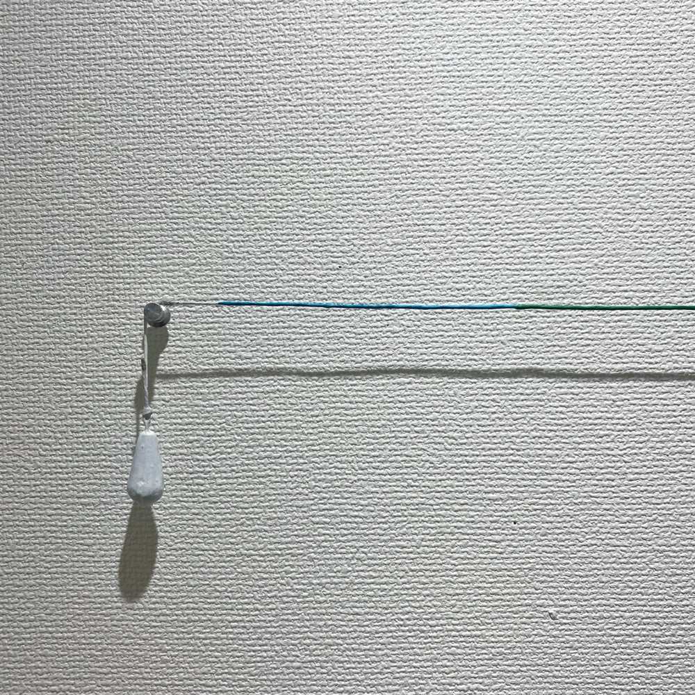 他にも、オモリでテンションをかけても「真っ直ぐ」にならず「曲線」になっているところ、壁に映る影と合わせて「二重線」になっているところなどが気になりました。重力やら、天候による湿気やら、照明という光やら、もはや「何次元絵画」だと思っているのか? 作者が「一次元」と正解を示してくれているのに。