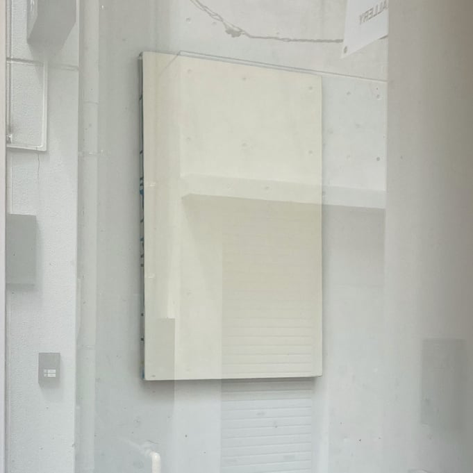 この「Untitled」の制作年は2010年。他の作品は2021〜2022年です。1階から階段部分、2階と作品を鑑賞してきて、最後にこちらを観ると何か変な気持ちになります。線、四角、六角形、とシンプルな色と形状を観てきたのに、この「Untitled」が一番わかる? ステートメントの最後にあった「とにかく絵の具を塗ることが楽しいです。」を読んでイメージした作品はこういうものではなかったか? きぼりおさんがインスタグラムの投稿につけているハッシュタグ「#絵ってなんですか」、がここで浮上してくるようです。色々考えてみたけど、わかりません! 絵ってなんですか?