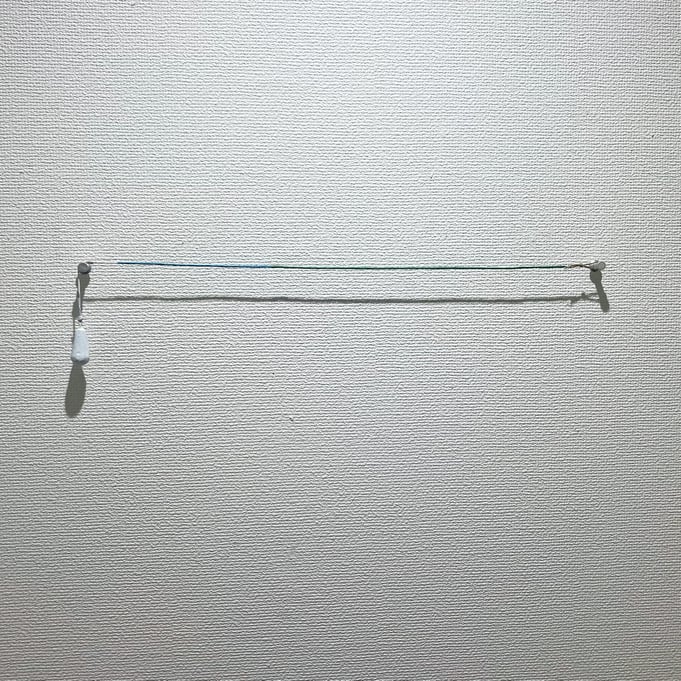 一次元絵画という語を聞いたことありますか?ぼくは無かったです。自分で思いつきました。「絵を描いています」と自己紹介したときに、「平面ですか」と言われ答えにつまったことが気になって、平面について少し考えました。平面は厳密にはこの世界には実在しなくて、観念の中にだけ存在しうるものです。これは直線も同じ。ぴんと貼った布に描いた絵が平面と呼ばれる世界では、ぴんと貼った糸に描いた絵は、線と呼ばれるはずです。線上の絵を壁につけて展示するときにいくつかの問題が起きました。それらを解決する方法がいくつか思いついて、そのうちのいくつかをやってみて、いくつかを展示しています。他のやりかたもありそうですが。