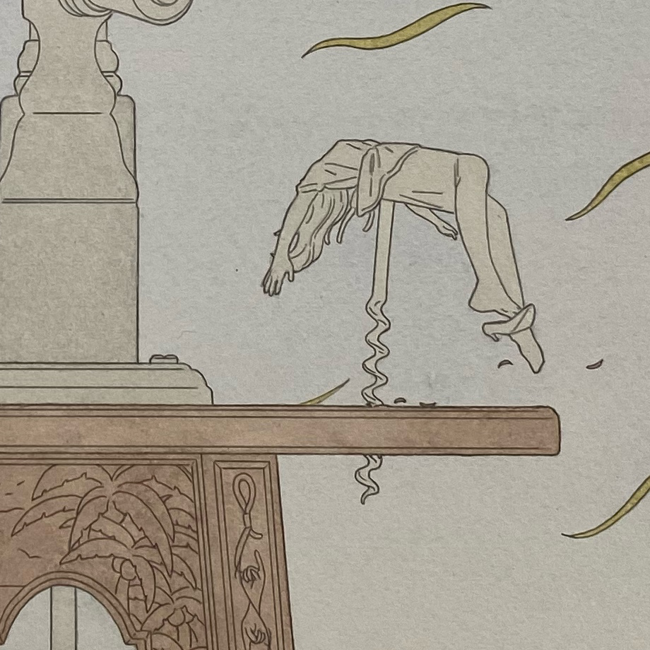 例えば、「LIFE, SAVE, AH~ #4」で登場するモチーフ、チェーンブロックは八木が再び「ライフセイバー」を見たいと願い、当初幻を見た際の体勢(お姫様抱っこ)を再現するための器具として使用しているものであることから、「スイムキャップ」が「ライフセイバー」に焦がれていることの隠喩となっています。また同時に、それが身体が浮かせる装置であることから、重力ひいては社会規範からの解放、あるいは超能力なども象徴しています。