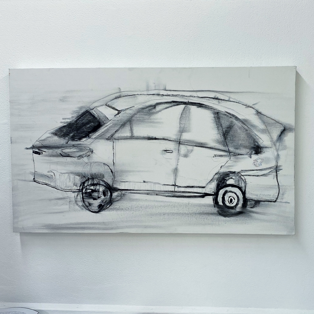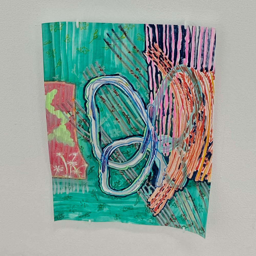 右下に写っている作品も含まれます。これらで一つの作品。トランスミッターは発信機、伝達者という意味があります。伊藤夏実さんは、やはり広がっていく「<」の向きか。
