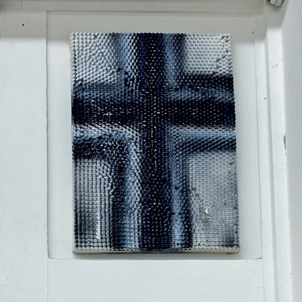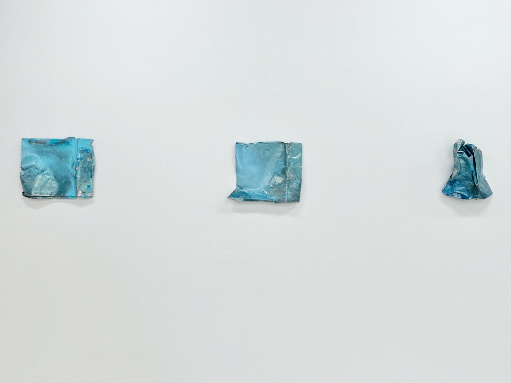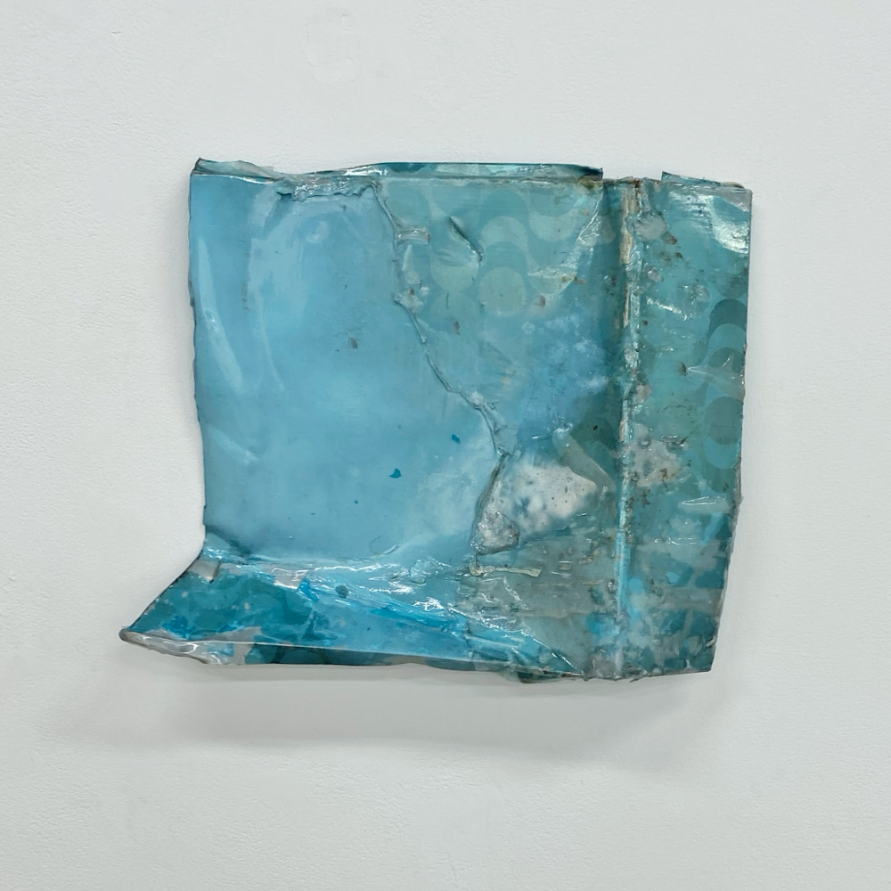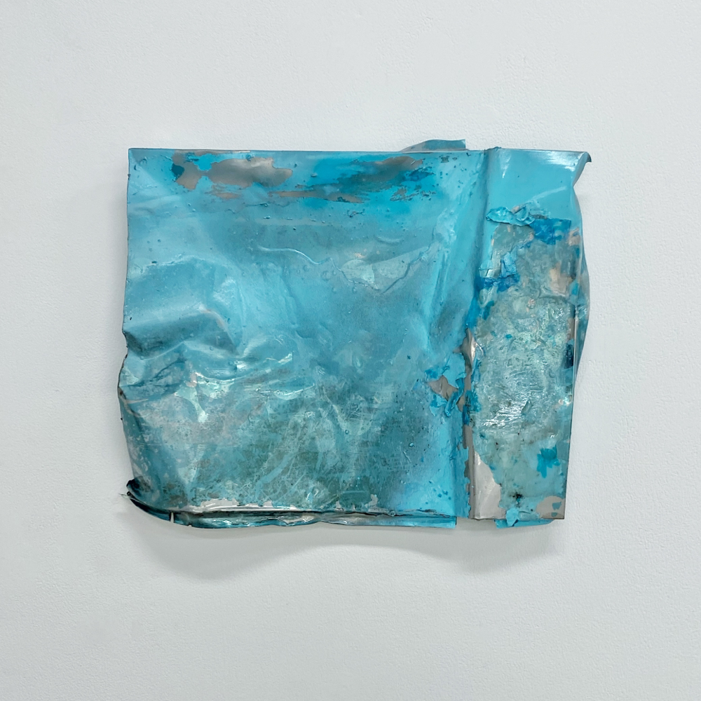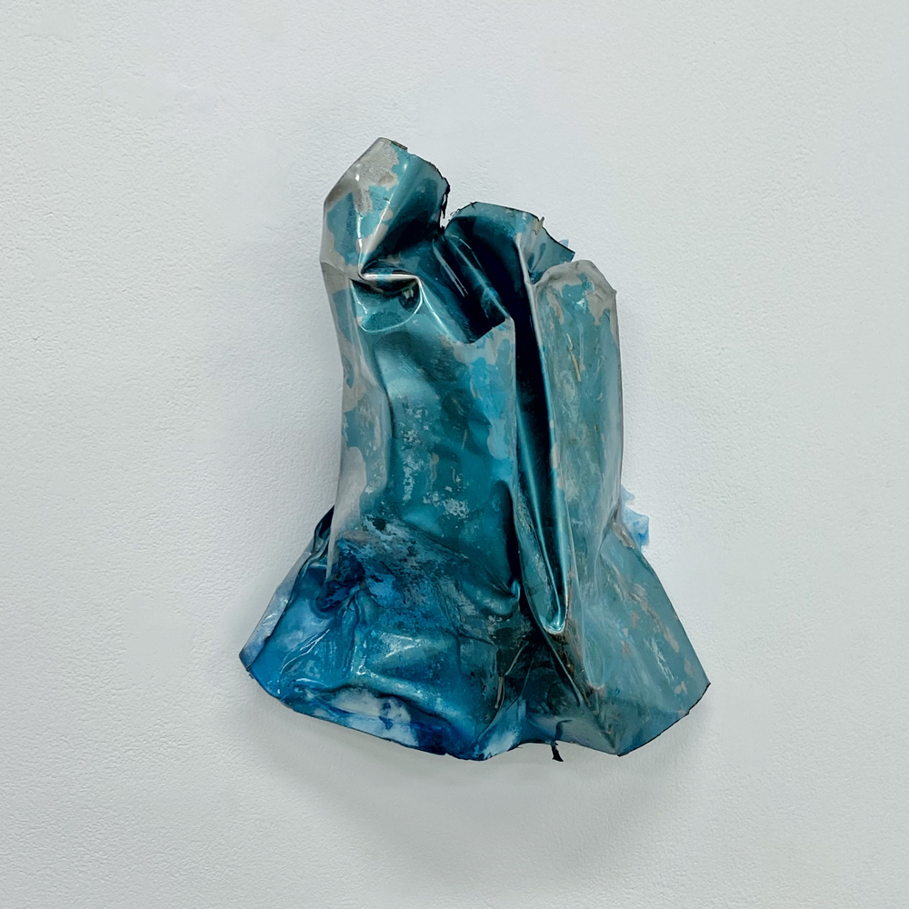空に膜をはってクシャっとしたような形状。空に膜をはるって何? と、冷静になると疑問が浮かびますが、作品の見た目とタイトルはすんなり納得できる感覚がありました。空の感じがするし、膜をはったんだな、と分かる。そして広大な空を小さく折り畳んで部分にしても、空を感じる。察しの良い方はもうお分かりと思いますが、関口美咲さんの作品から感じた風向きは「><」です。きゅーっと集中していくことで全体を感じる、というベクトルです。