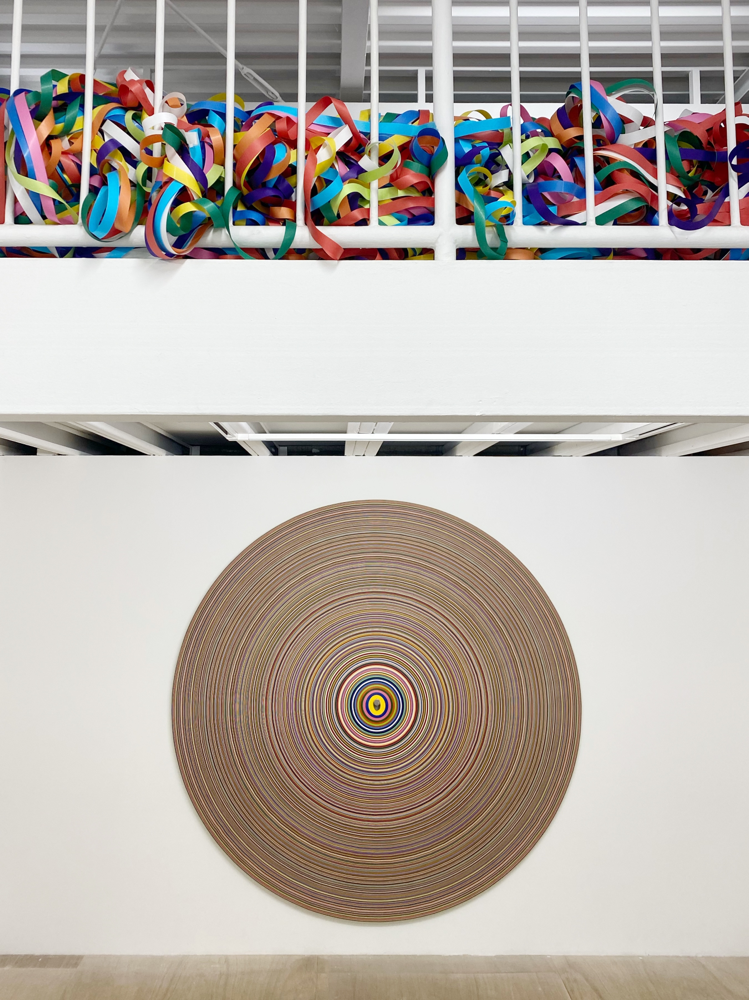本展では、この、同じ600本の紙テープによる、まったく違った密度を感じさせる2作品を比較して観ることが出来ます。
