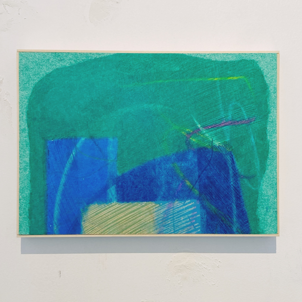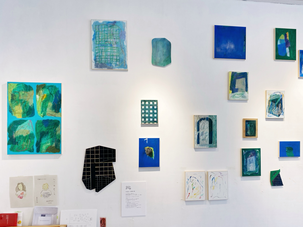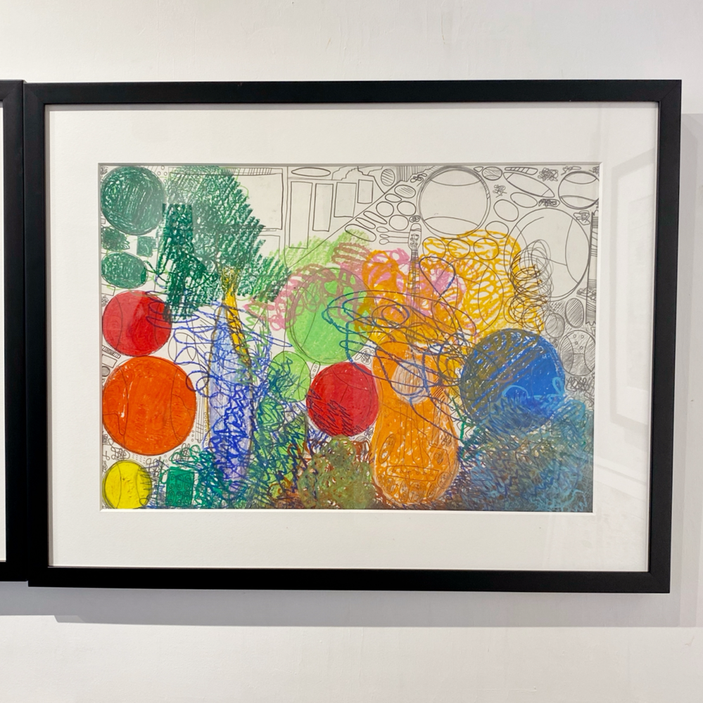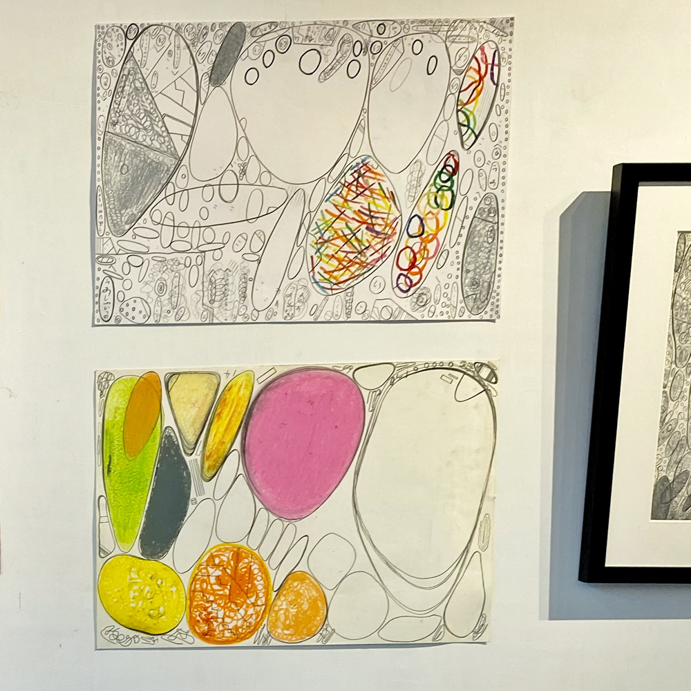 chappyさんの作品のキーワードとしてもう一つ「線」があります。無数の線の重なりを、私たちは時に「面」と認識したり、線を消した跡も「線」と感じたり。本展では前述の「BIG OIL PASTEL」による「重厚さ」を感じる作品が多かったのですが、その「重さ」の対極にある「軽さ」を感じさせる作品もありました。