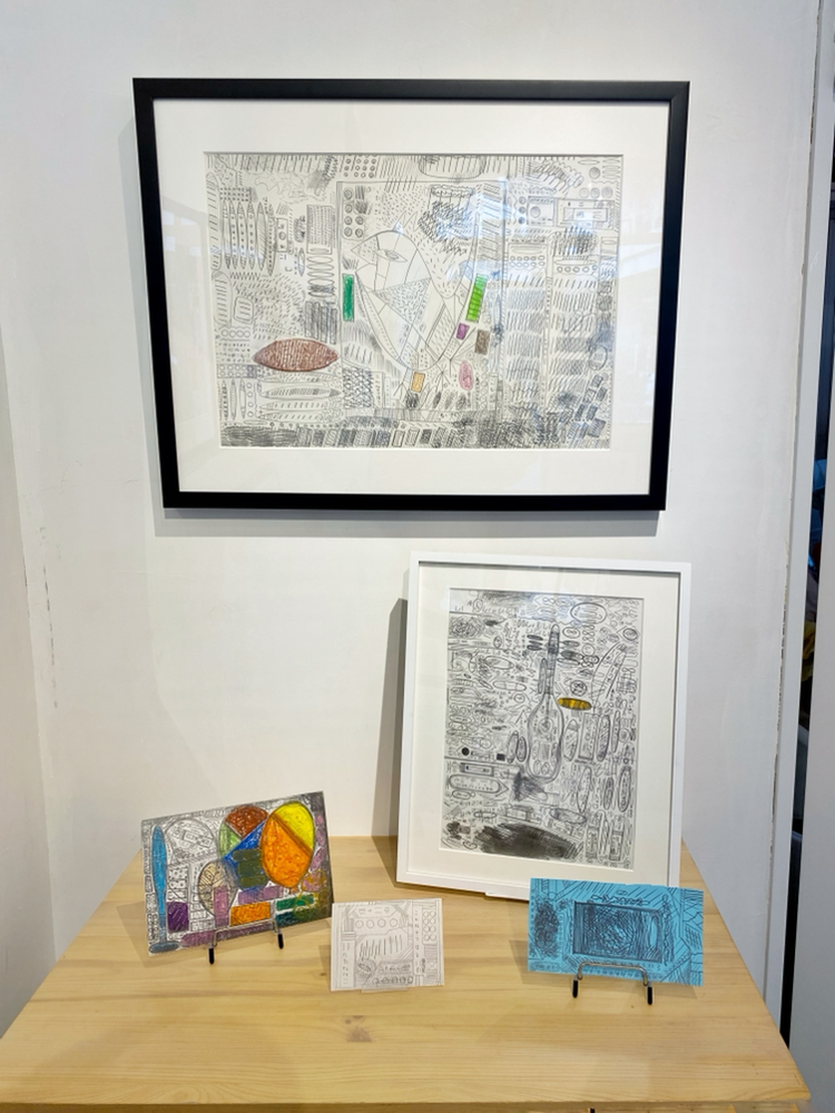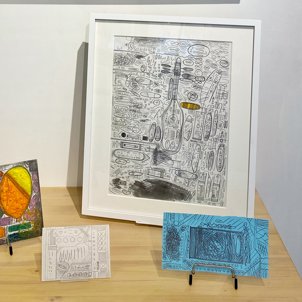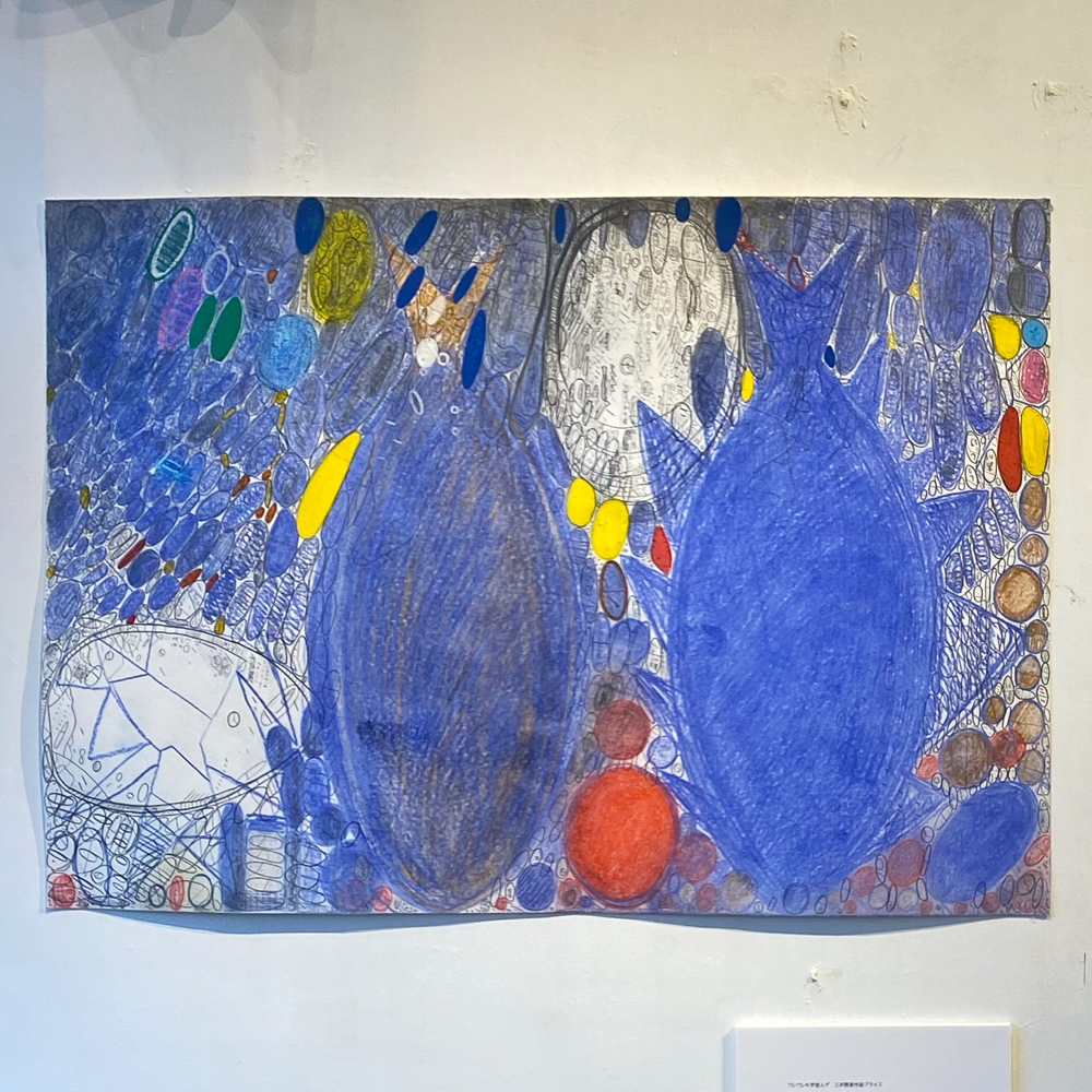 神奈川県横浜市の弘明寺に2022年4月にオープンしたGoozenさんは、「障害がある人、障害がない人、さまざまな人たちにひらかれた場でありたい」というコンセプトのもと、色々な偶然を企画しているアートギャラリーです。本展「ワレワレモ宇宙人ダ」は、本サイトでも何度か過去の展示をレビューさせていただいた亀戸アートセンターのchappyさんと、滋賀県甲賀市の障害者福祉施設「やまなみ工房」所属作家である三井啓吾さんによる2人展で、異なるバックグラウンドを持ち接点がなかった2人の作品を、Goozenさんが「宇宙人に自らを紹介する地球人」という面白い切り口で結びつけています。