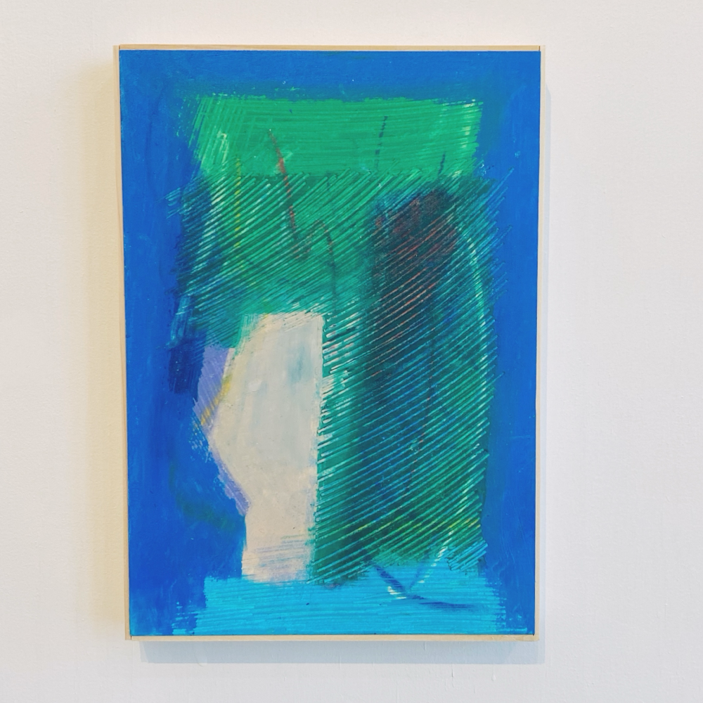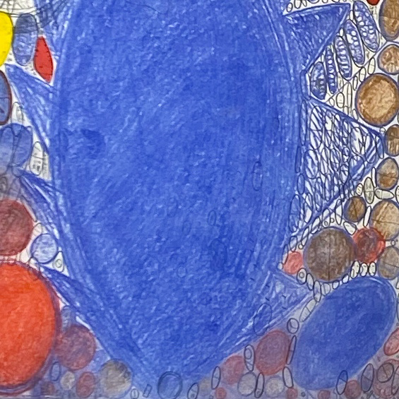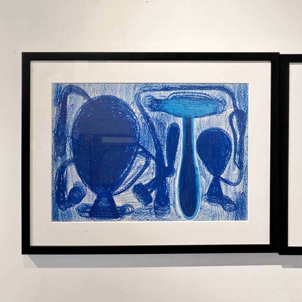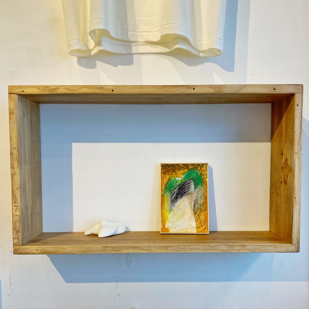 これには使用画材の変化も関係しているそうです。本展では、河内洋画材料店さんの「BIG OIL PASTEL」を使用して制作された作品も多い、とのこと。「BIG OIL PASTEL」は退色の少ない上質な顔料を多く使用し、かつ、なめらかな描き味を実現する為に可能な限りオイルの含有量を高めたオイルパステルです。実際の作品を観ると「厚み」をとても感じます。