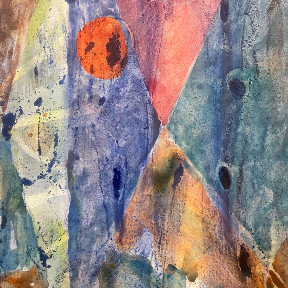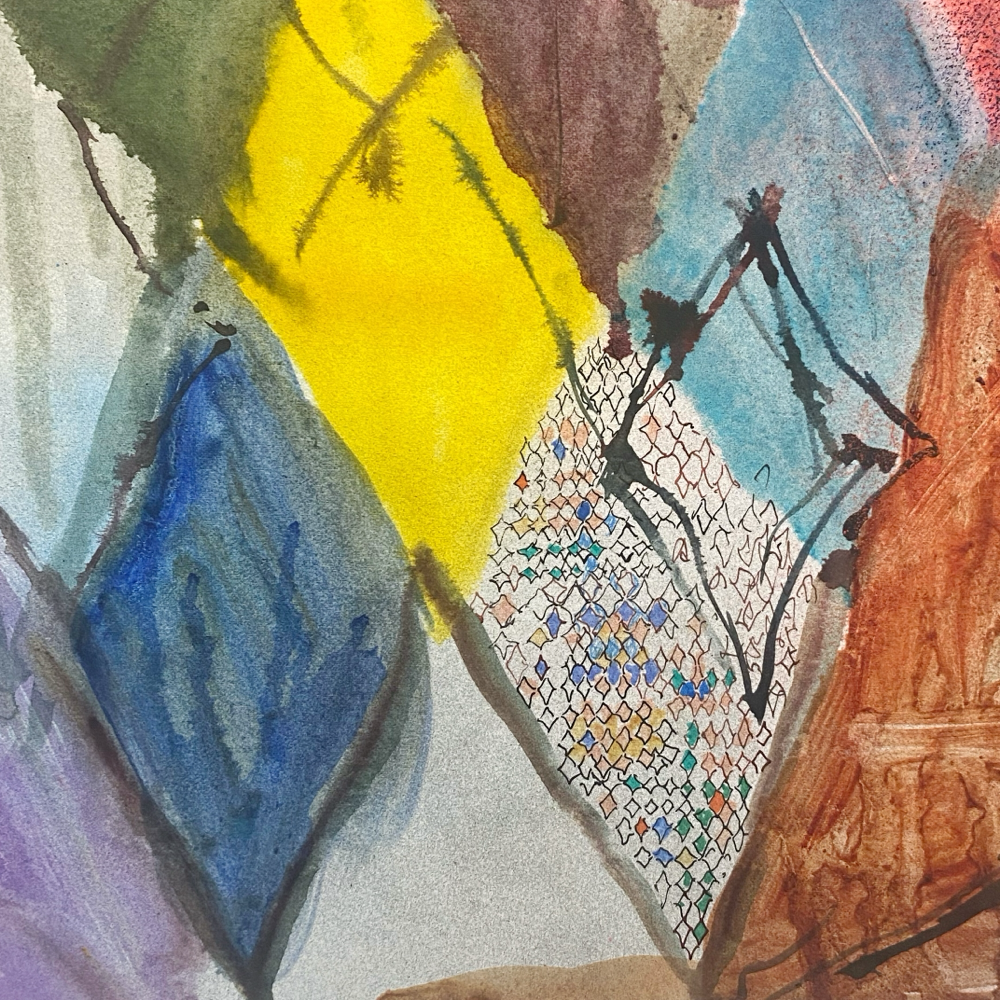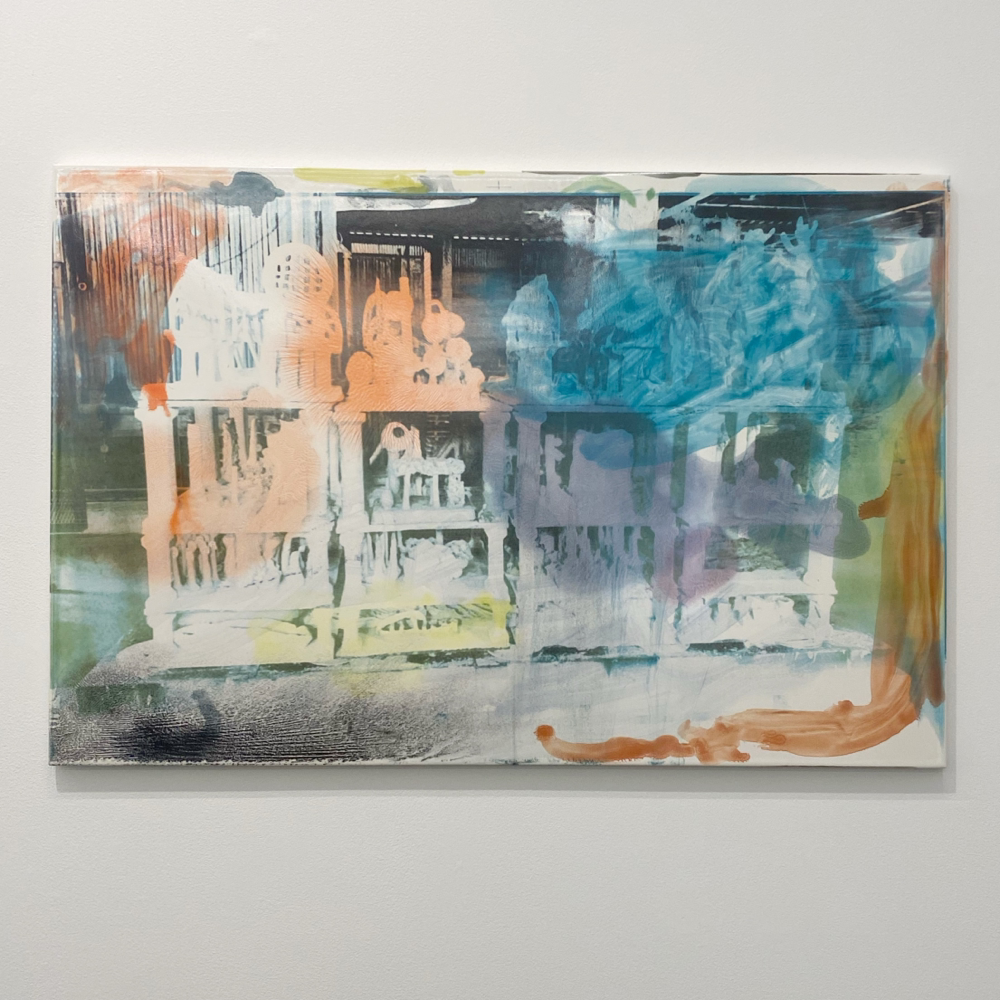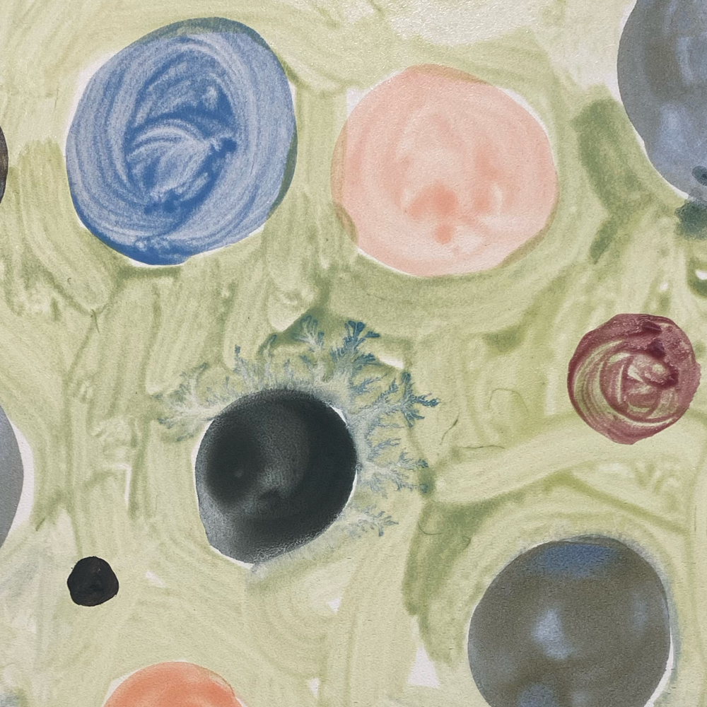 ペインティング作品は、絵の具の粒子が紙へ染み込む具合の違いを踏まえて制作されているようで、色の粒を意識したような表現がそこかしこに見られます。