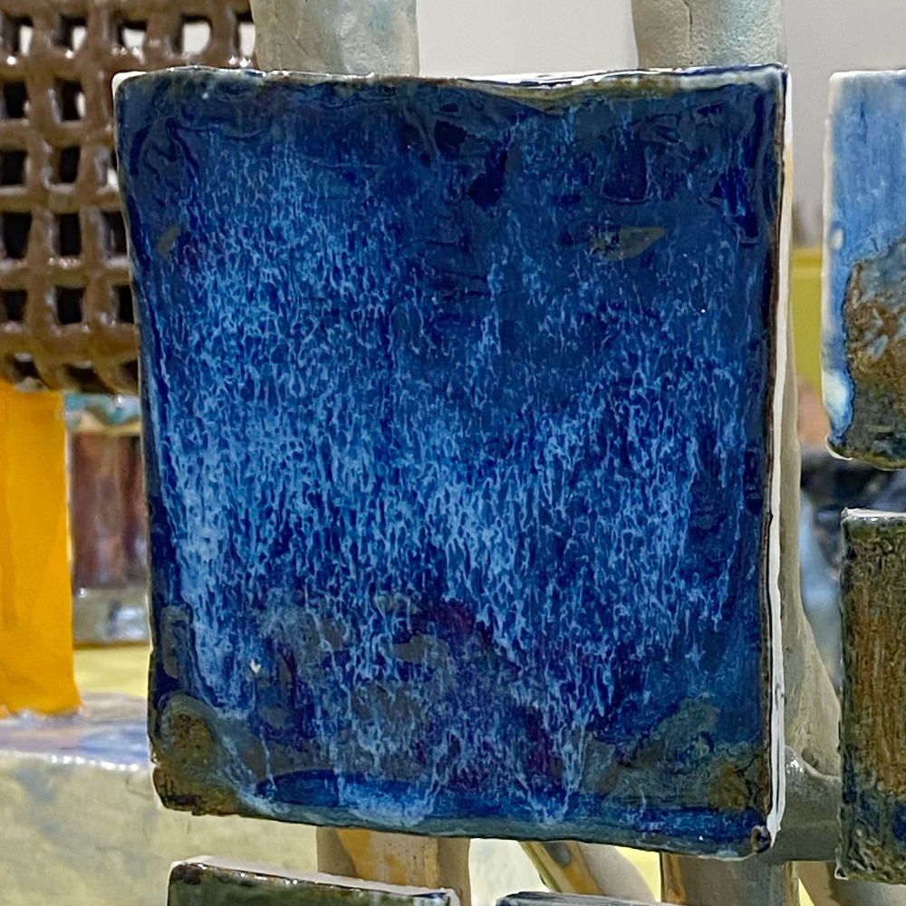 陶板作品。通常なら焼成により反ってしまう陶板を反らずに制作できるのは大塚オーミ陶業株式会社の協力によるもの。セラミックタイルなどの建材などにも用いられている技術。窯業の歴史と技術が感じられます。