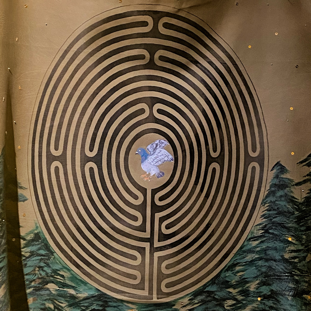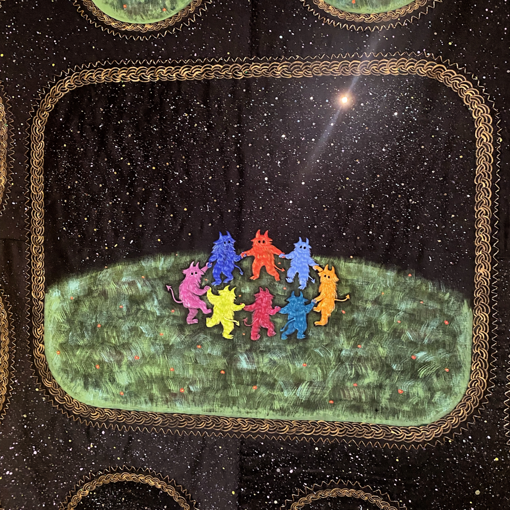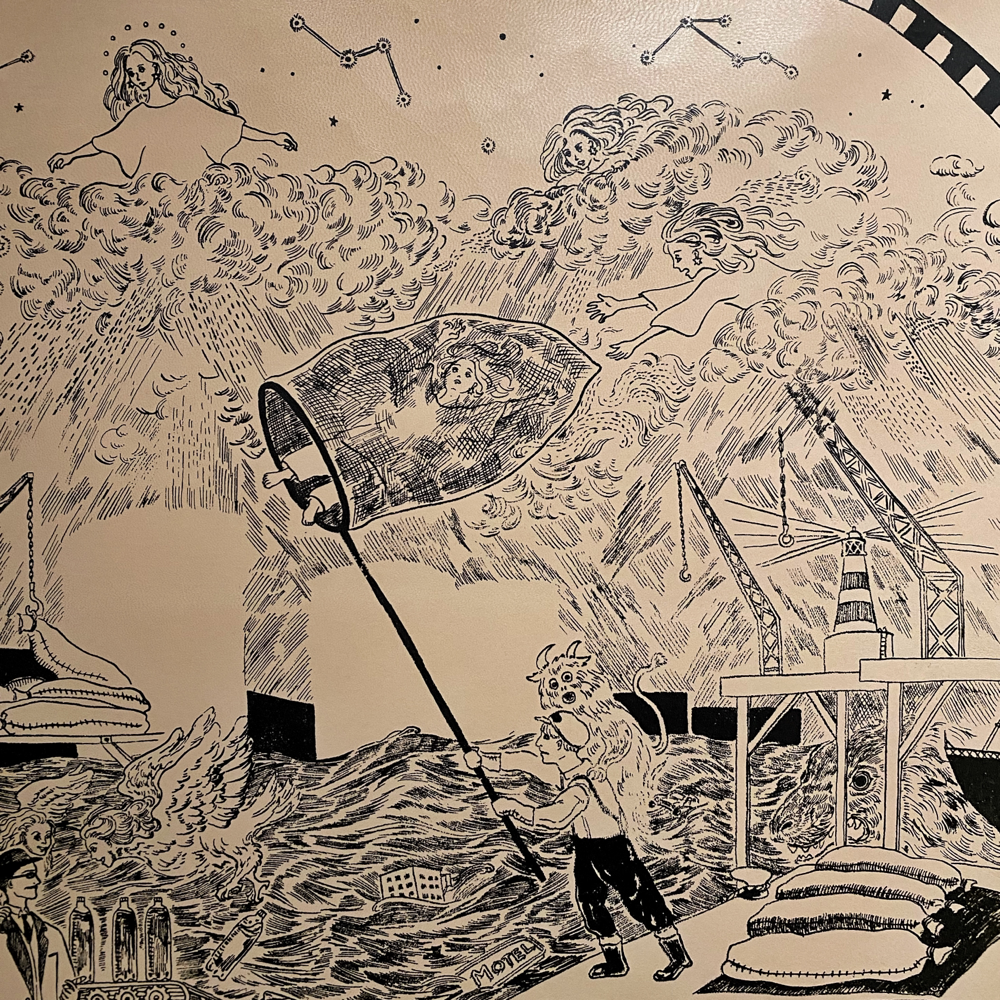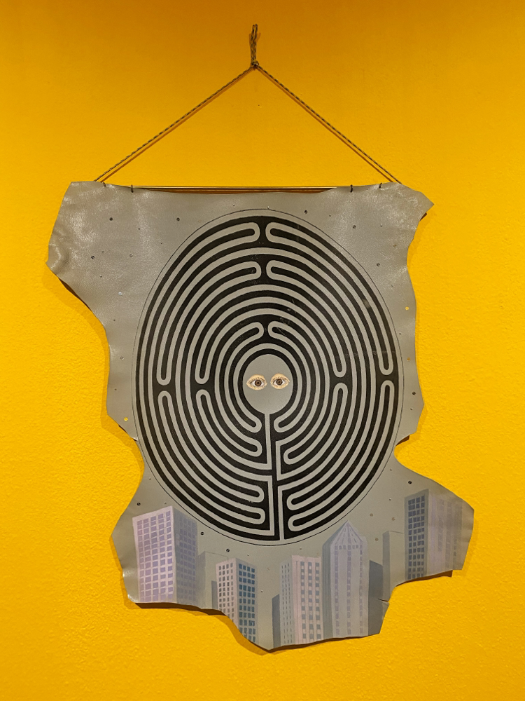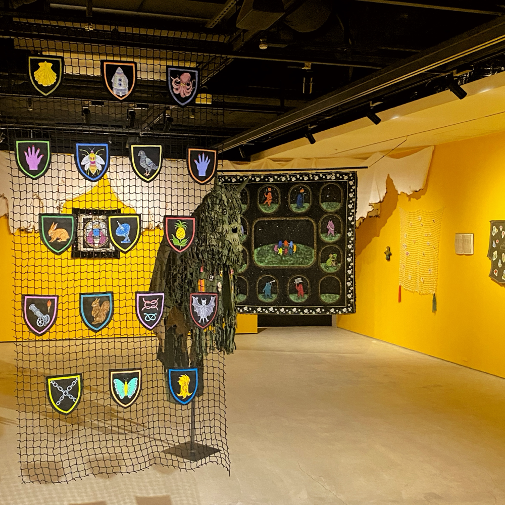 天牛美矢子さんは1989年生まれ、京都市立芸術大学大学院修了。ご実家が古書店という環境で育ち、物語や印字そのものの持つ「魔力」から発展した作品を制作されています。本展「偉大なるタムタム」は、展示空間全体で表現される呪術的な世界観が楽しめる展示ですが、深く観ていくと、今現在の私たちがまさに直面していて考えていかなければならない、厳しい現実に対する示唆が込められたものでした。