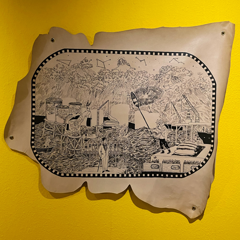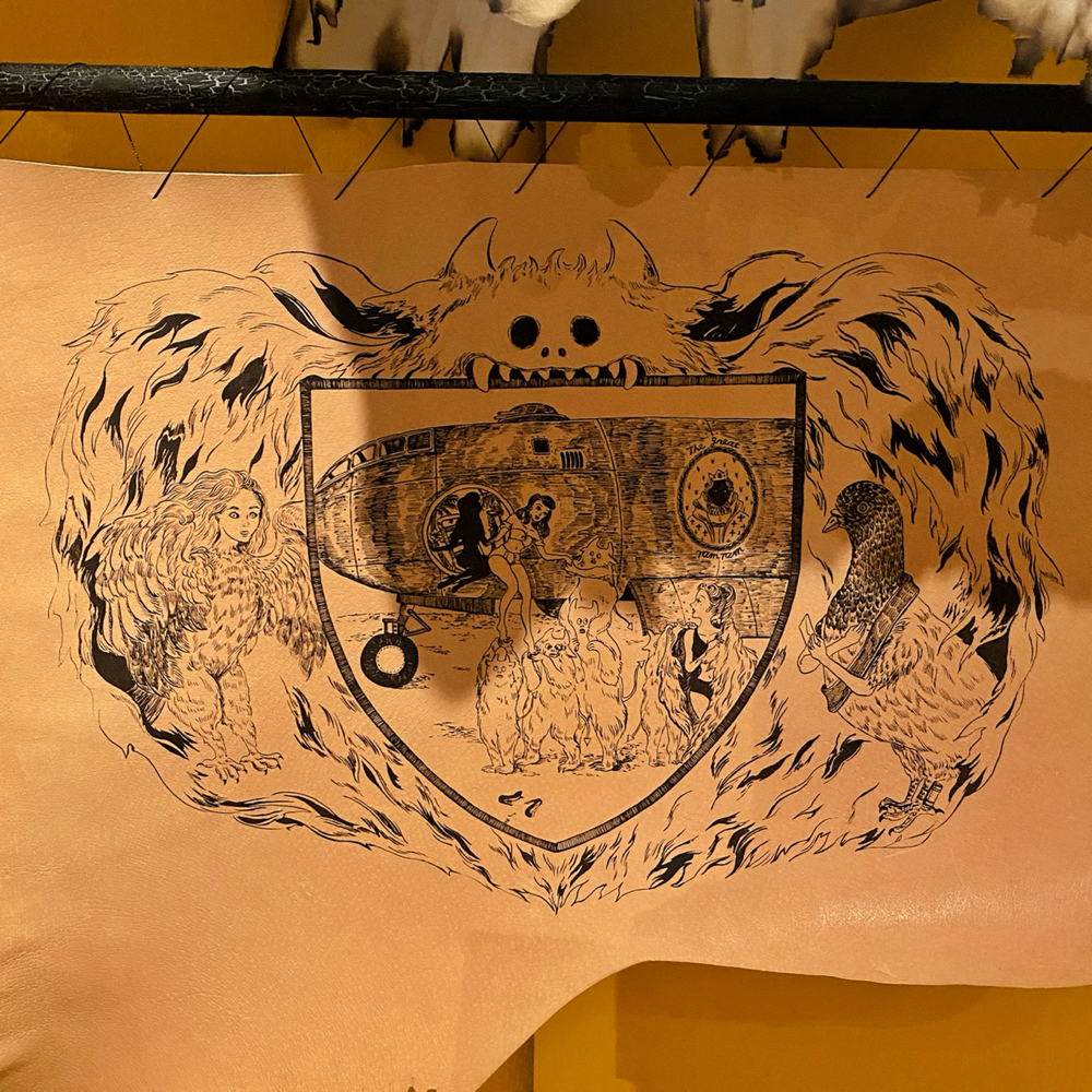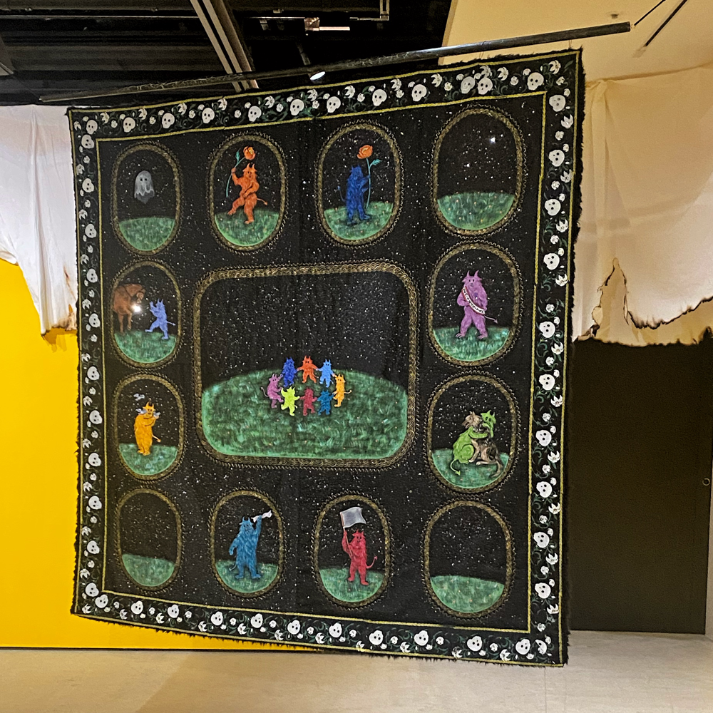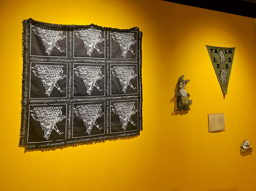魅力的なキャラクターの他には、呪物的な品々がいろいろ展示されています。考察するにはなかなか手強いなー、などと思いながら観ていると、在廊されていた天牛さんご本人に声をかけていただき、お話を伺うことが出来ました。