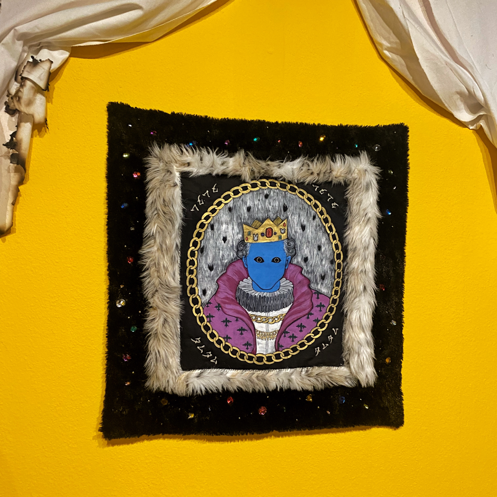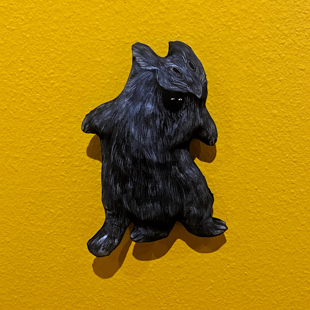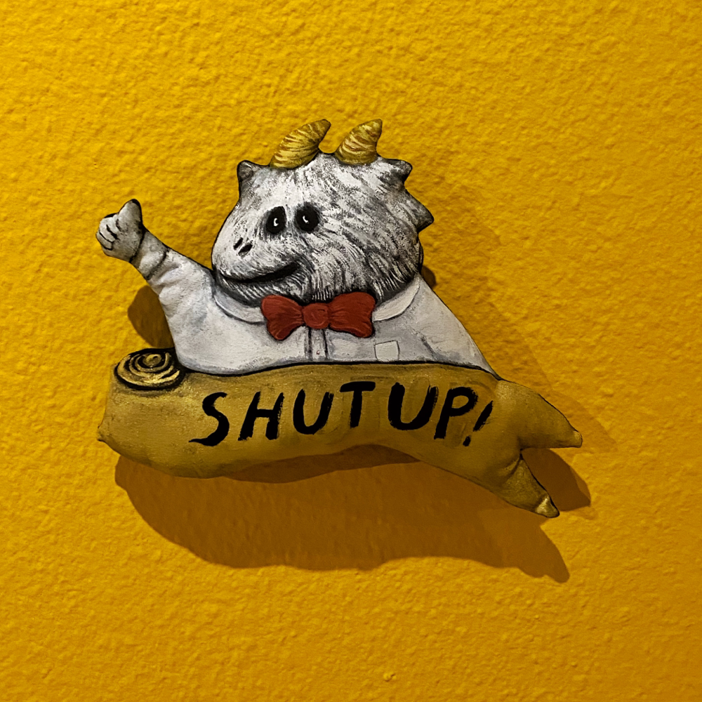 魅力的なキャラクターの他には、呪物的な品々がいろいろ展示されています。考察するにはなかなか手強いなー、などと思いながら観ていると、在廊されていた天牛さんご本人に声をかけていただき、お話を伺うことが出来ました。