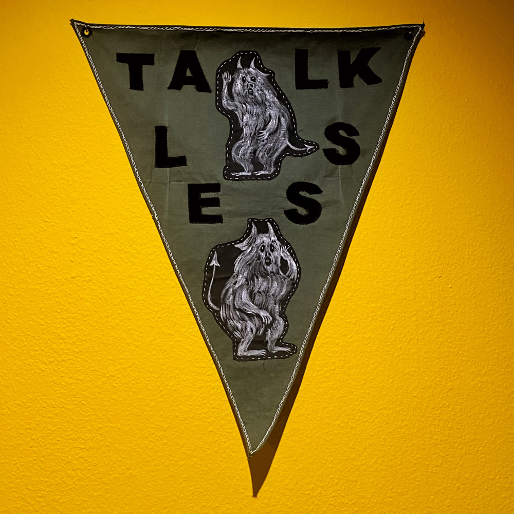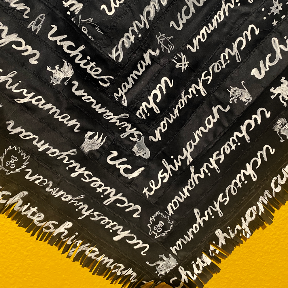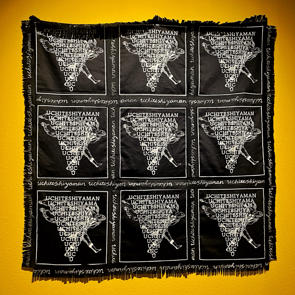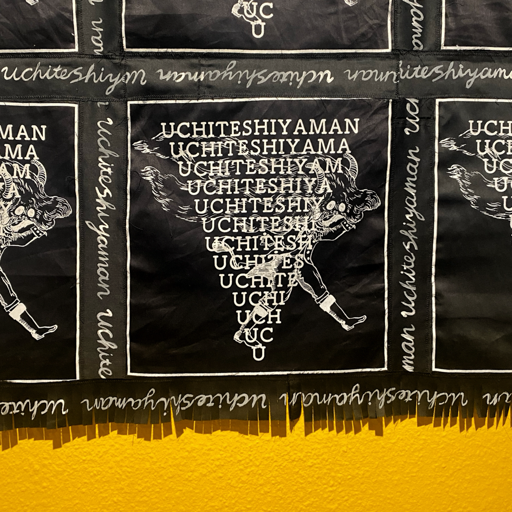 天牛さんには「信じるとは怖いもの」という思いがあるそうです。確かに本展の作品からは、プロパガンダで言われてきたそのものの意味というよりは、それらを盲信することの怖さ、というものに焦点が当たっていると感じます。言葉そのものというよりは、すぐ意味が取れないような、隠れたメッセージのように表現されているのはそのような意図もあるのではないでしょうか?