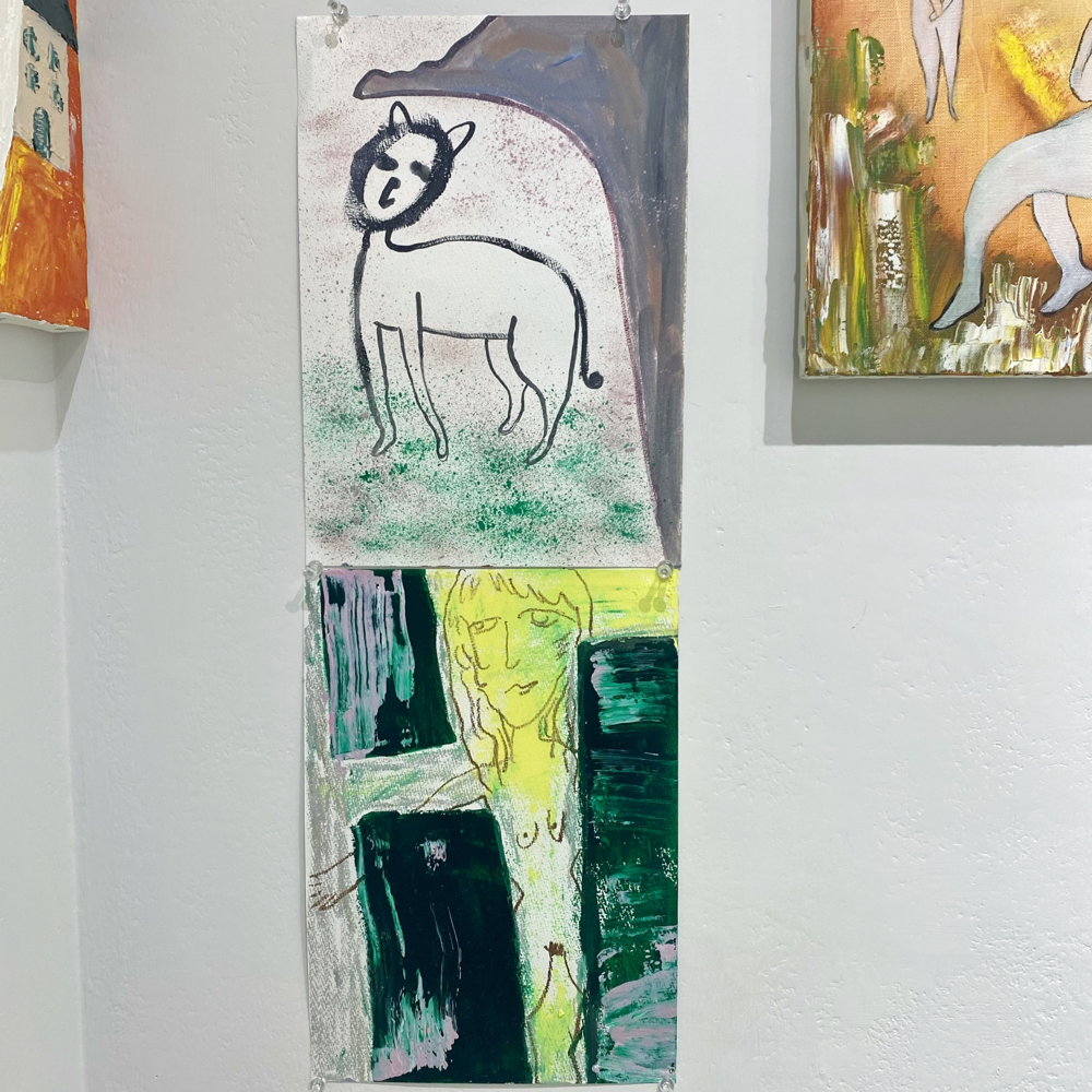 新宿眼科画廊で開催の佐々木万志帆さんの個展に伺ってきました。SNSでアイコンに使用されている馬のような人のような不思議な生き物の絵が私のツボで、以前から気になっている作家さんでした。