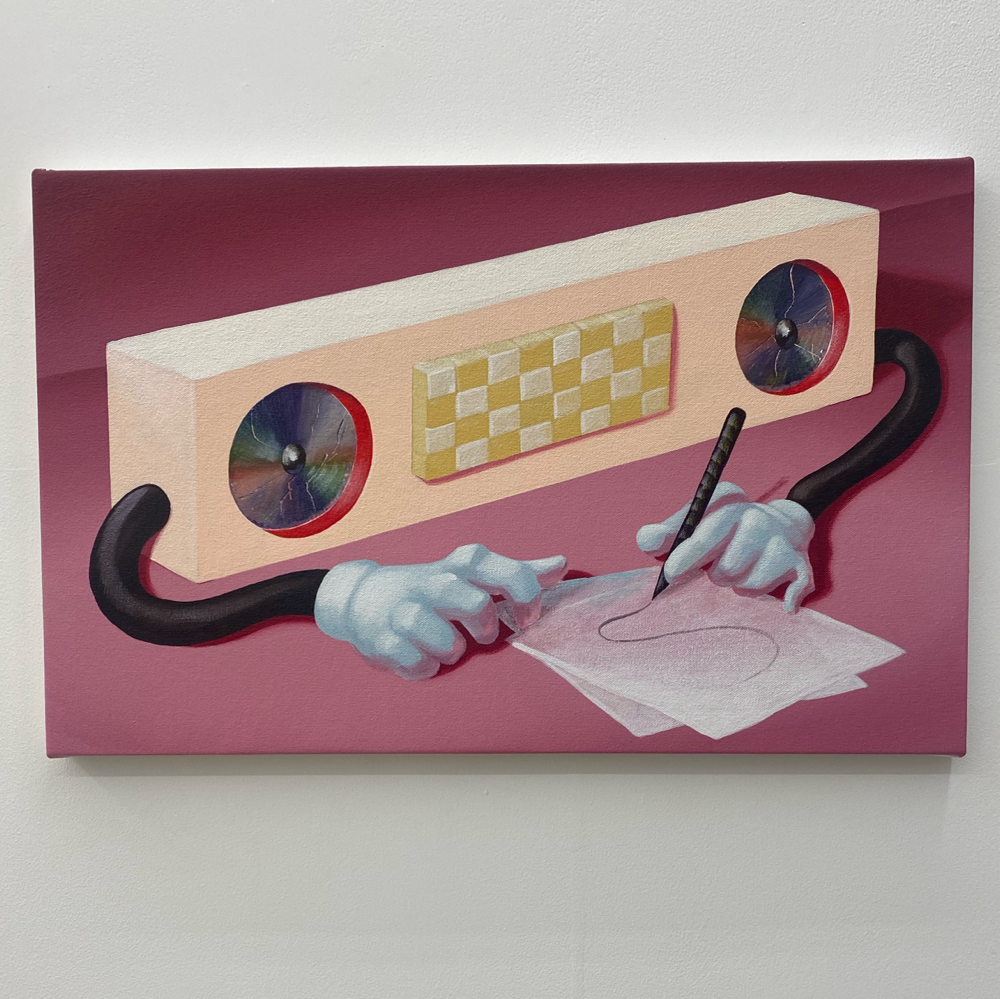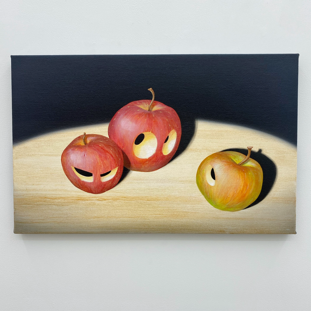 高木真希人さんは1986年生まれ、多摩美術大学絵画学科油画専攻卒業、国内外で作品を発表されています。高木さんの作品はシリーズ化されており、例えば、"snap-shot"シリーズでは暗闇の中で偶然フラッシュ撮影されたクリーチャーたちが描かれ、"moon-shot"シリーズでは月の光のように他からの光を浴びているモチーフが、”stack”シリーズでは積み重ねられた箱、缶、金属、機械などがキャラクター化された姿が描かれています。