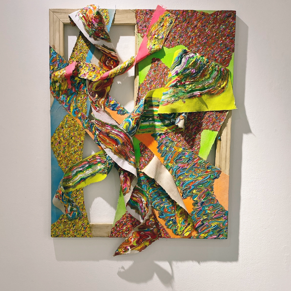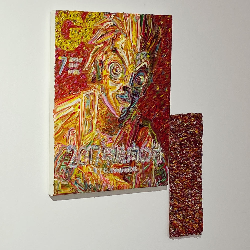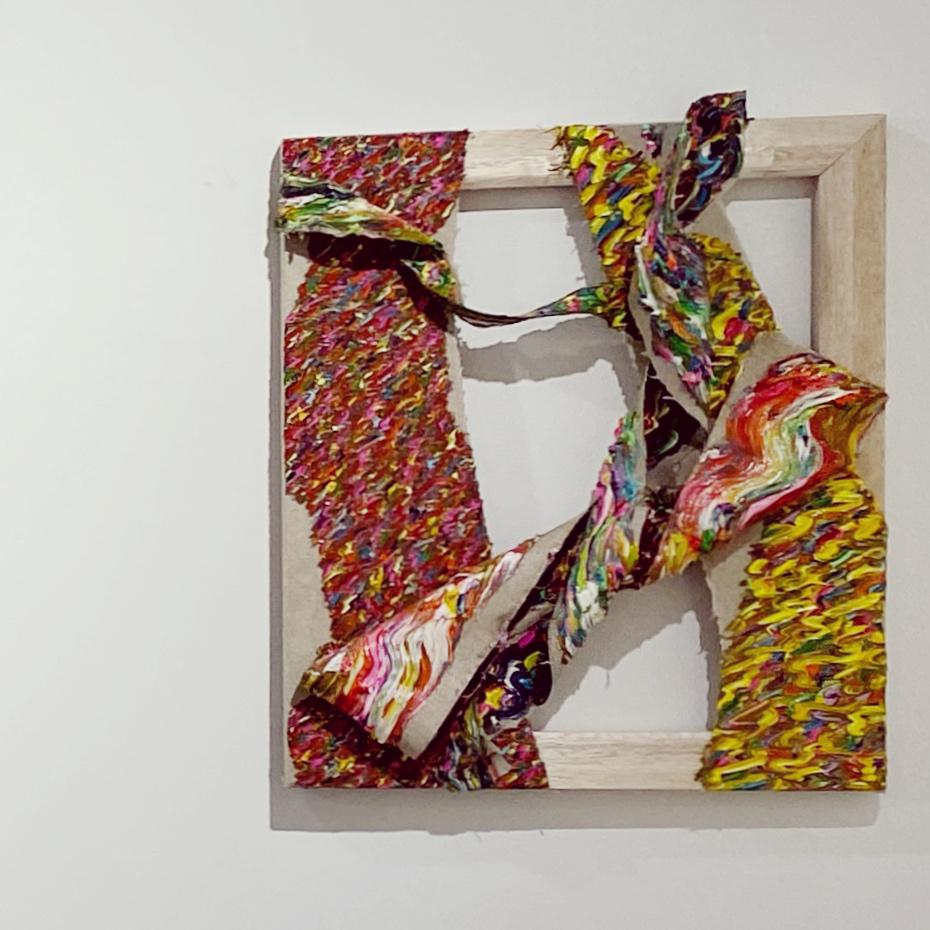 「エネルギー」シリーズは半立体的な作品になっているため、支持体そのものが持つエネルギーにも意識的になります。影が加わることで、波状筆致のエネルギーが会場の空気を伝い、作品を観ている自分にも届いてくる感覚があります。