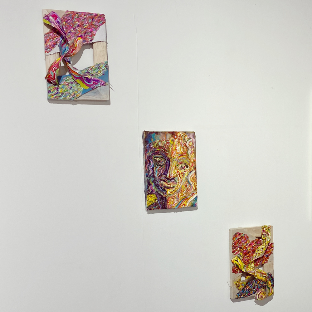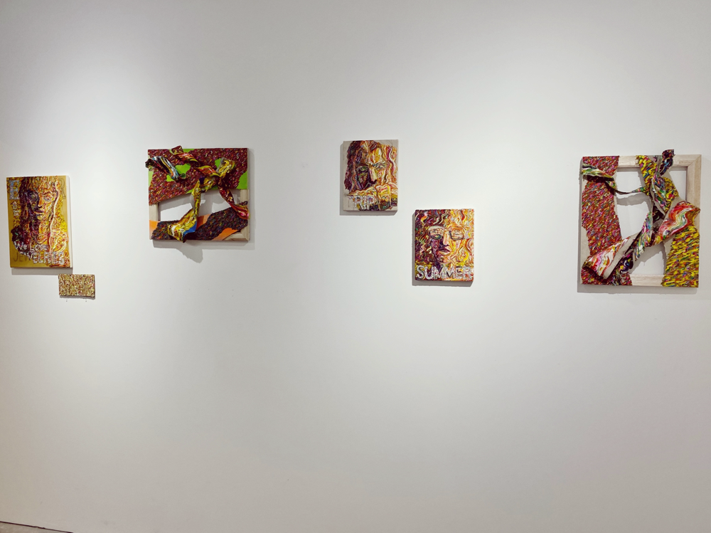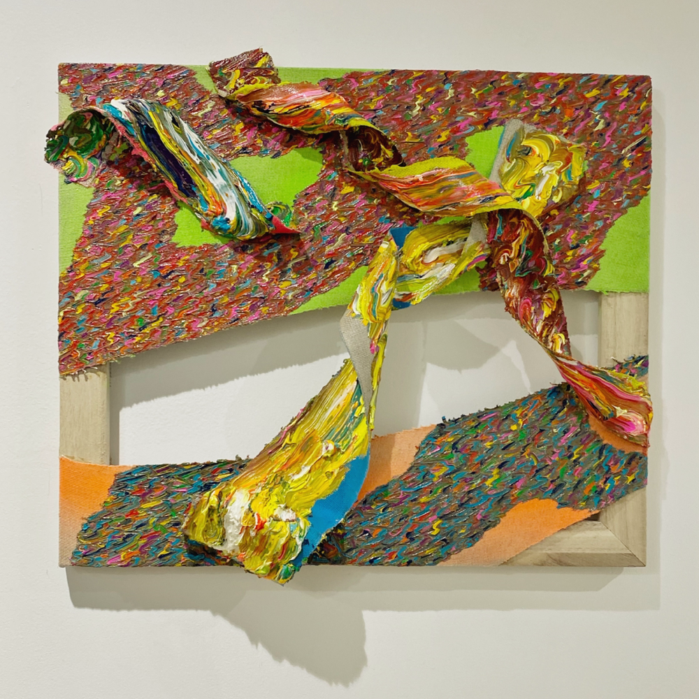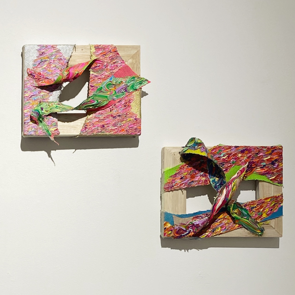 「エネルギー」シリーズは半立体的な作品になっているため、支持体そのものが持つエネルギーにも意識的になります。影が加わることで、波状筆致のエネルギーが会場の空気を伝い、作品を観ている自分にも届いてくる感覚があります。