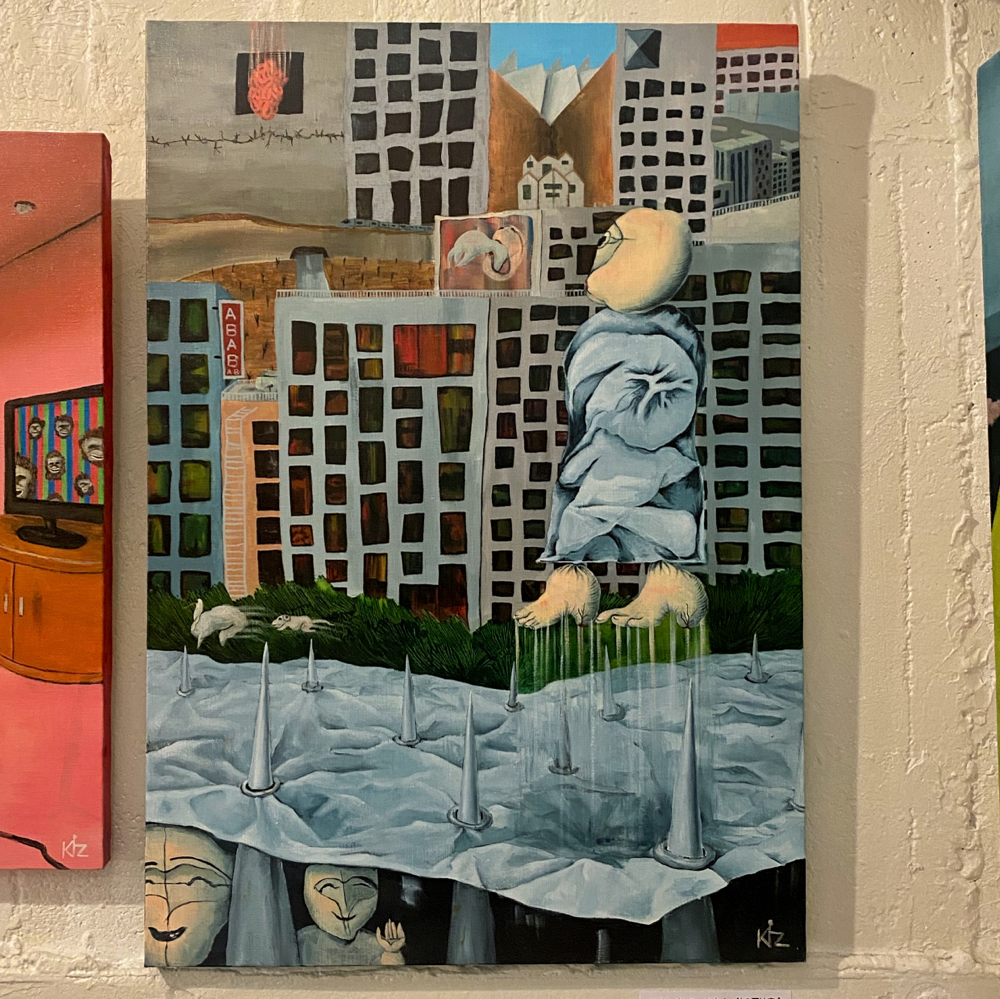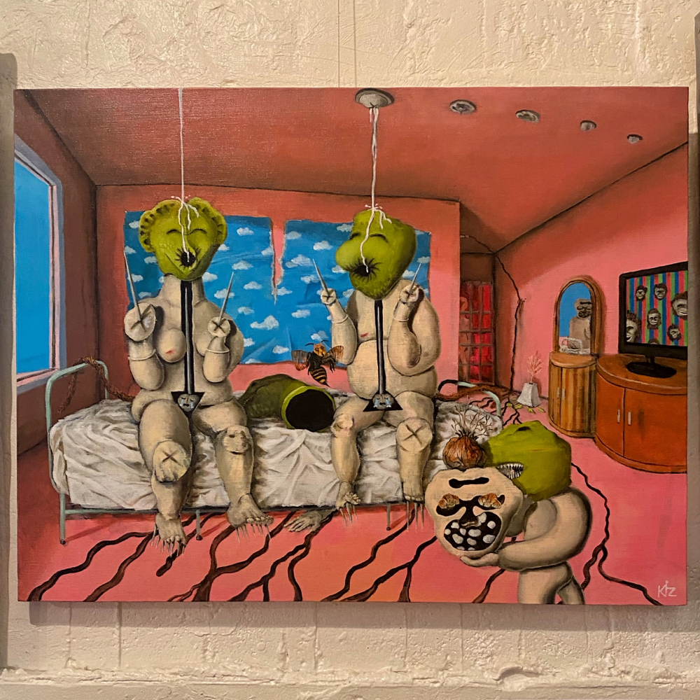 木澤さんの作品をシュルレアリスムの系譜と捉えてその先を深掘りしないのは少し違和感があります。なぜなら、シュルレアリスムの画家達はおそらく自分達のしていることは新しくて「有意義だ」と信じて作品制作をしていて、木澤さんとはその部分でハッキリと異なるからです。またそのことは鑑賞者の「共感」「理解」にも関係しています。人は理解出来ないものに「恐怖」を感じますが、木澤さんの作品を「怖い」と感じる人が少ないというのは、「共感」や「理解」を得ているからだと言えます。「有意義」ではなく「不毛」を掲げる作品が、どうして鑑賞者の「共感」や「理解」に繋がるのか。「今日の社会の様態」「時代の情感」はそこにあります。