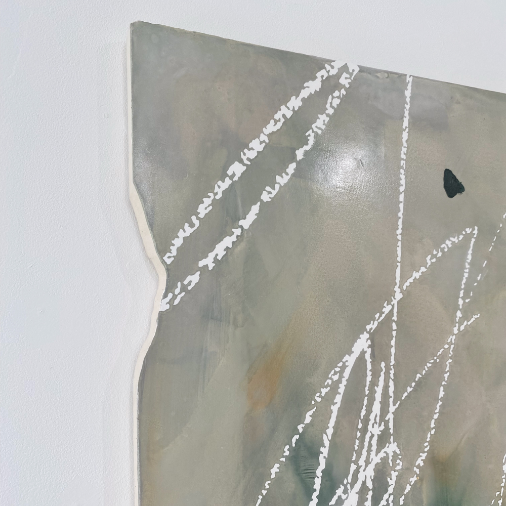 遠くから観るとチョークのようなもので「重ねられた」ように思えた白いストロークは、接して見ると「取り除かれた」部分であることが分かります。