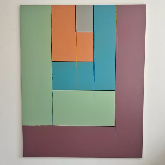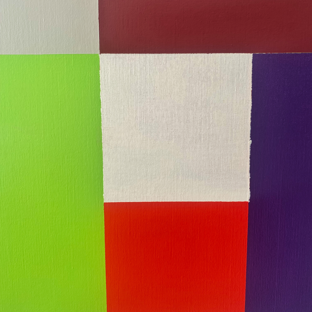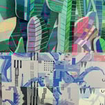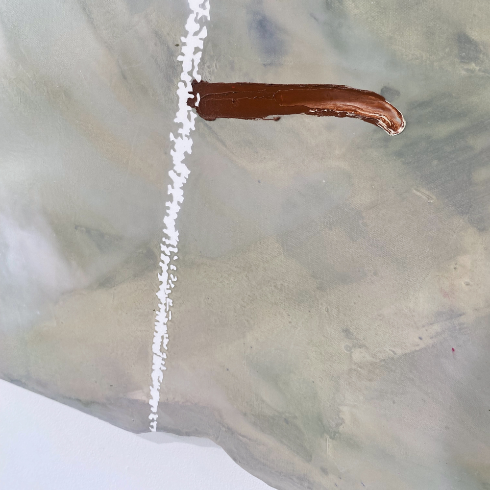 奥天昌樹さんは1985年生まれ。武蔵野美術大学造形学部油絵学科油絵専攻卒業。ちぎられた紙の端を思わせるシェイプト・キャンバス (変形キャンバス) に明確なモチーフを排除して描かれた作品群は、絵画が孕んでしまう美術史的な文脈や過剰に付加される意味を取り除く意図を持っています。絵画におけるプロセス=積層は追体験可能なものと考え、「重ねる」と「取り除く」を仕込んだ作品は、工程の時間軸が行き来可能であることを示しています。
