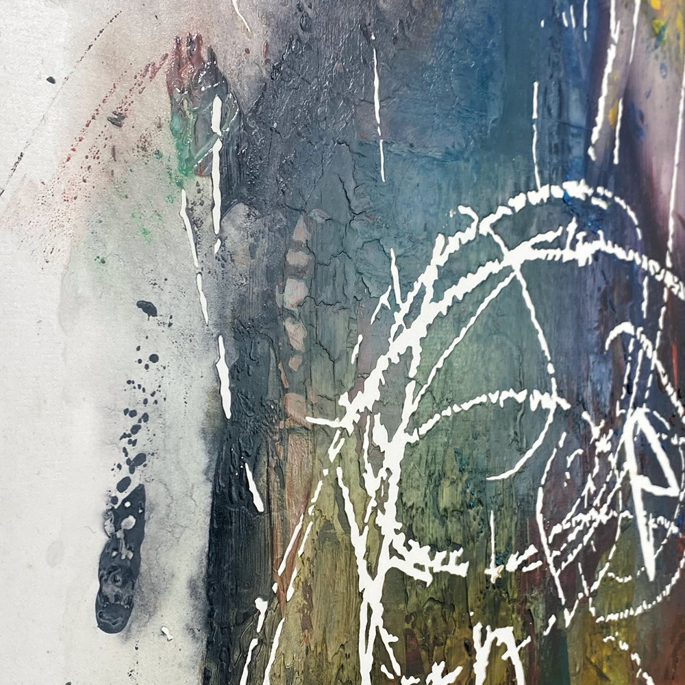 色の重なり、ひび割れで生じた凹凸、取り除かれた白い部分との境にあるめくられたような質感等、心地よさを感じる部分がたくさんありました。